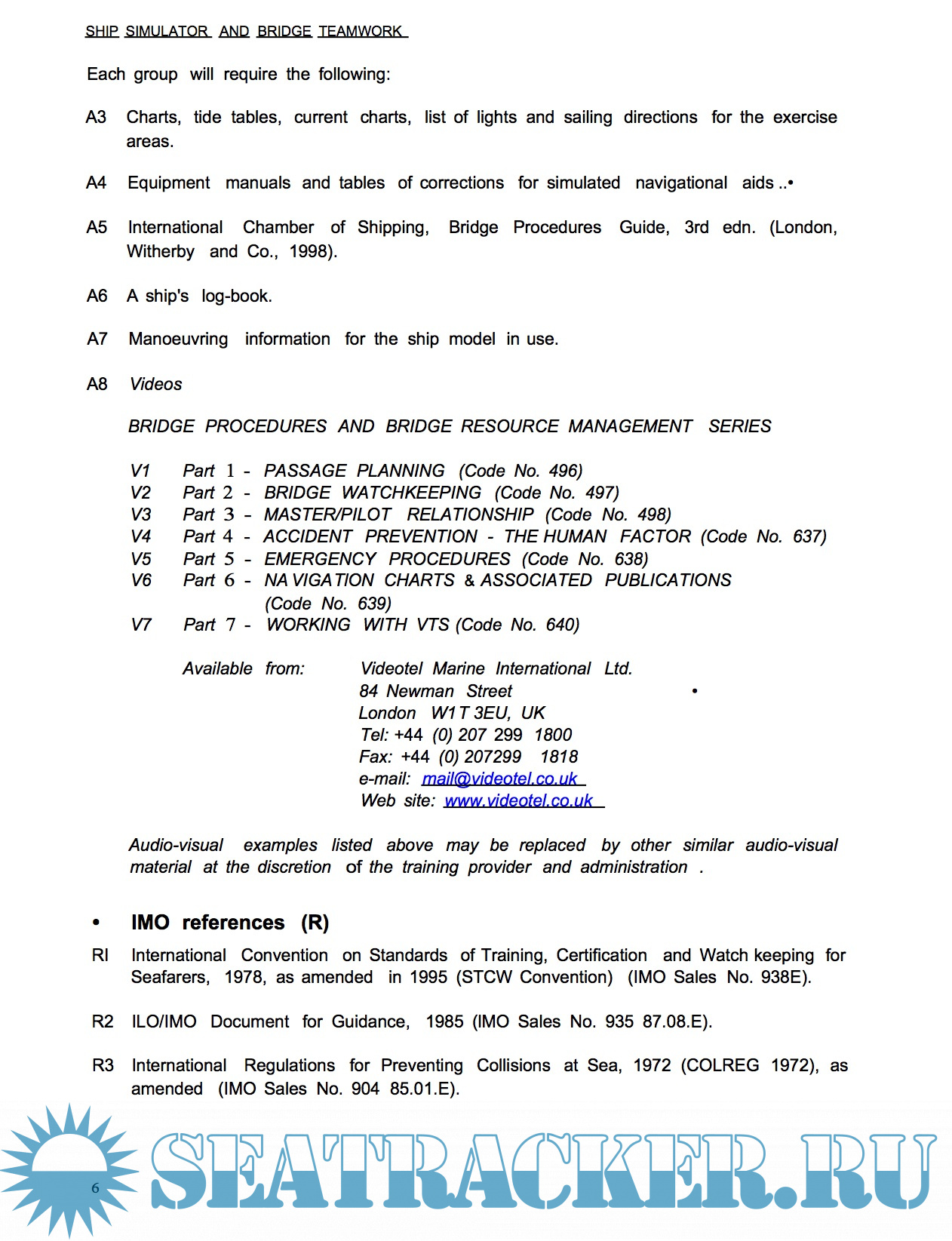 Description: This course on ship simulator and bridge teamwork is based on material developed for IMO, under contract, by the consultants MaTech AS - Norcontrol Training, Horten, Norway, and revised by Seagull AS, Horten, Norway.