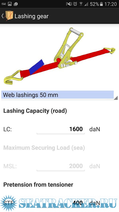 Year: 2017 Version: 1.04 Developer: MariTerm AB Platform: Android 64-bit OS compatibility: no System Requirements: Android 4.0.3 or higher Localization: english Crack: Not needed Description: ReadyLash by MariTerm is a very user-friendly tool for checking required cargos securing measures according to different rules or standards and for different modes of transport. ReadyLash allows the user to easily combine and test different cargo securing methods to find the most suitable solution. The user may choose between simple entry of data to quickly get an answer to which method to use or advanced settings, which allows for more detailed cargo, lashing and cargo transport unit properties to be entered. The results can be presented in different ways: • As percentage of cargo weight that is safetly secured • As actual secured cargo weight in ton • In detailed table format or in simple layout Calculations can be based on one or more of the following rules and standards: • European norm EN 12915-1 (2010) • IMO/ILO/UNECE Code of Practice for Packing of Cargo transport Units (CTU code) • Swedish Regulations This is the paid edition of app., which costs 4,99 EUR on Google Play.