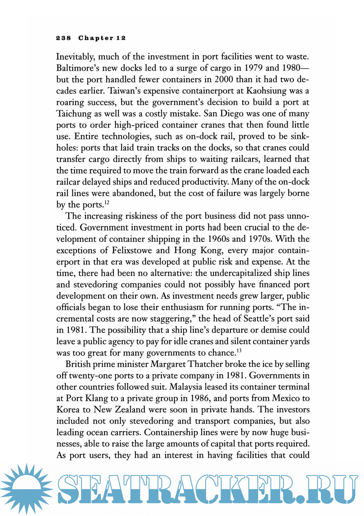 Year: 2008 Language: english Author: Marc Levinson Genre: Textbook Publisher: Princeton University Press ISBN: 0-69I-I2324-I Format: PDF Quality: Scanned pages + text layer Pages count: 389 Description: The original version of the present volume was published on thew day of the fifteenth anniversary of the very first container voyage; today, it is treated as the first complete history of the shipping container. The publication is recounting how the containerization proceeded the entire path starting from a quite impractical idea and until the time when it turned into a really massive industry slashing the cost of worldwide transportation of cargoes and eventually resulting in the real boom in the global trade. However, the "containerization" of the world did not just happen. The adoption of the container required great money and required years of negotiations on the applicable standards that finally made it possible for the containers to travel on vessel or train or truck. In his publication, the famous economist of today, Marc Levinson, is demonstrating how the containers managed to transform the economic geography thus devastating the traditional ports such as New York and London fueling the growth of ones that were previously obscure. The volume provides the information that would be different to the people of any transportation industry not limited to the maritime shipping since the containers are used virtually everywhere.