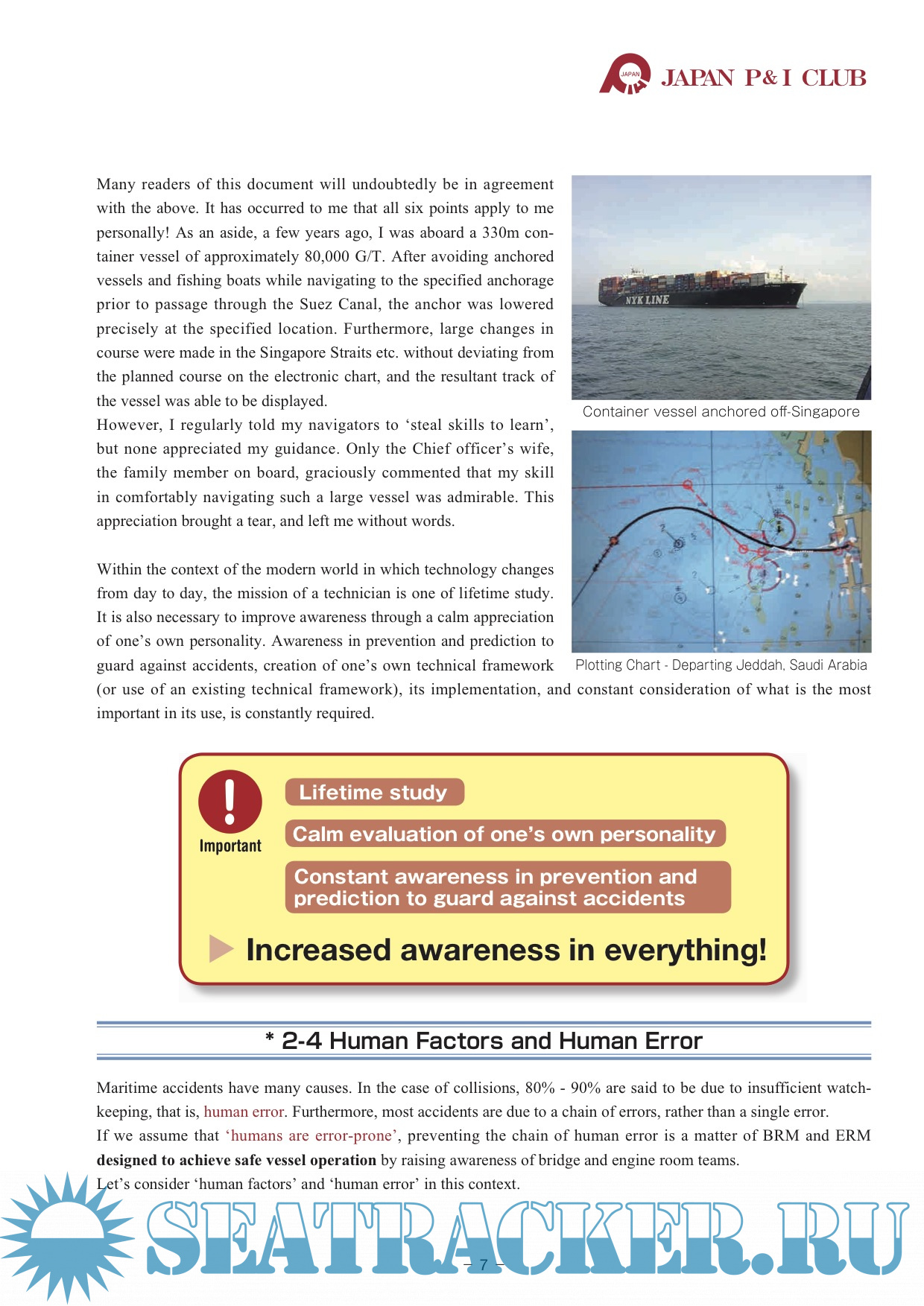 In other words, it is necessary that all members of the team engaged in operation of the bridge and engine room have a shared awareness, and that this aware- ness is not limited to specific crew such as captains and chief engineers.
