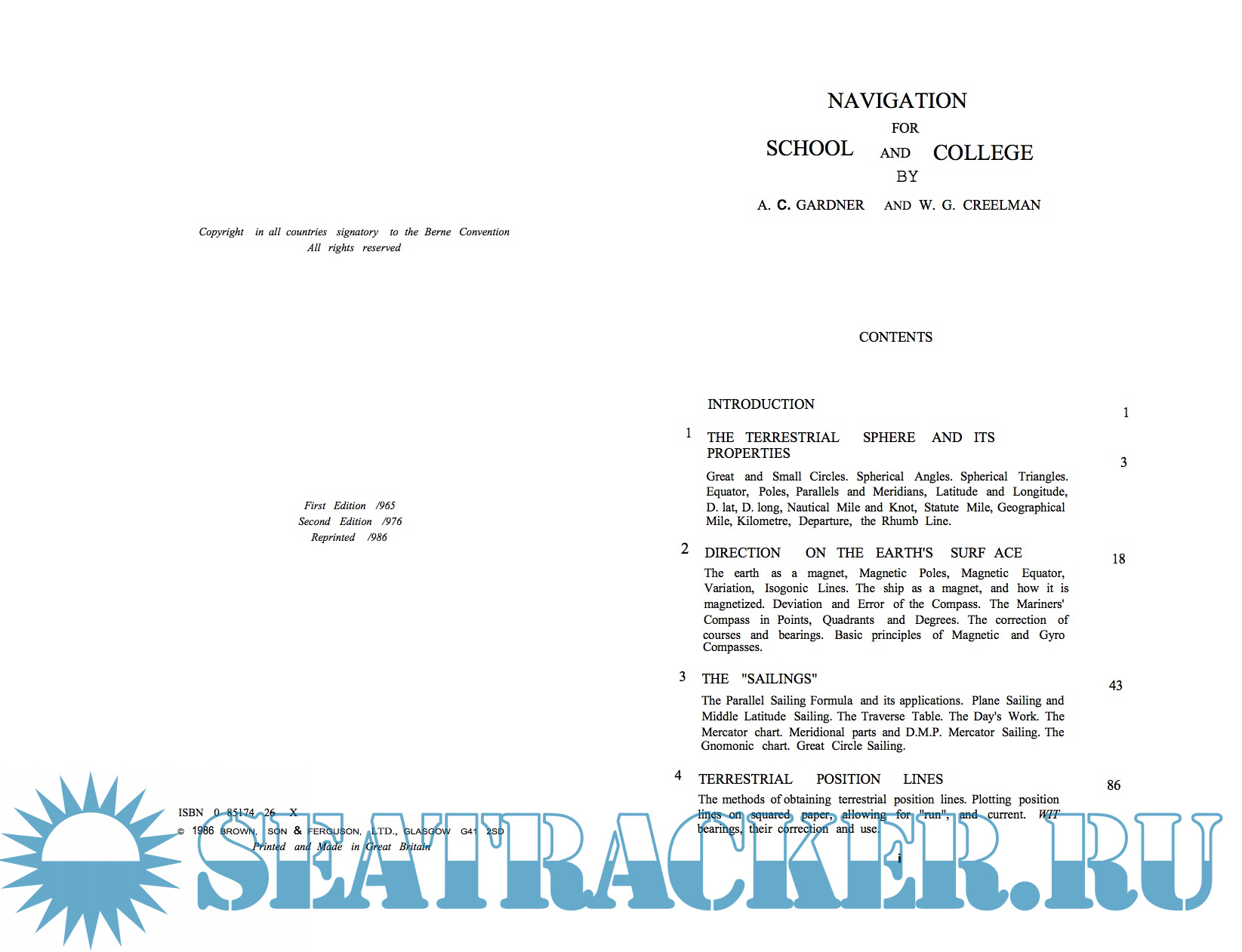 Description: If recent years a number of schools and colleges have introduced navigation into their curricula because of the subject's broad educational value, and the examining bodies for the General Certi- ficate of Education and the Scottish Certificate of Education have been setting examination papers in navigation for some considerable time.