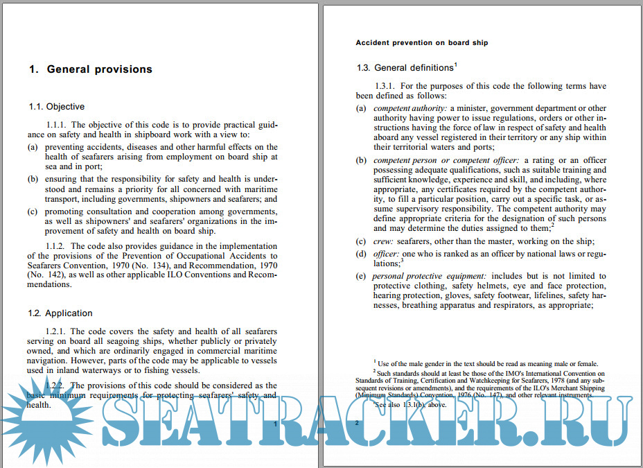 The experts considered that the code of practice constituted a body of advice which would be of great value to ILO member States. The code should not be regarded as a legally binding instrument, and was not intended to supersede national laws or regulations or other national safety and health rules. Its practical recommendations are intended for use by all those who have responsibility for safety and health on board ship. Its object is to provide guidance to shipowners and seafarers and others concerned with the framing of provisions of this kind in both the public and private sectors.