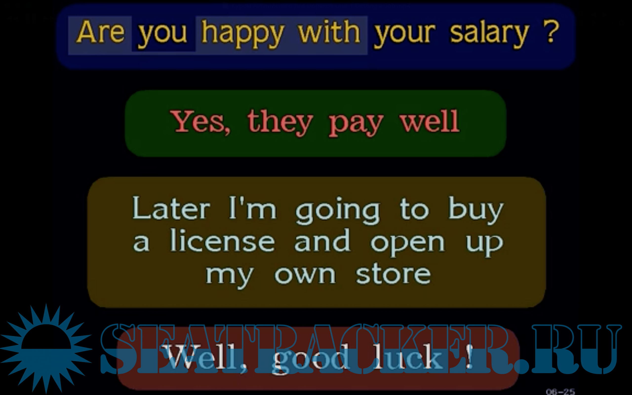 Year: 2000 Language: english Genre: Уроки английского языка Duration: 4 часа Quality: IPTVRip Format: MP4 Video: 480 х 360, 24 fps Audio: AAC, mono, 44.100 kHz Description: Курсы Английского для моряков