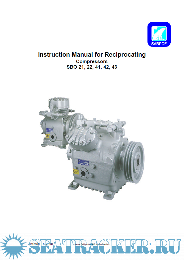 Sabroe Compressors SBO 21,22,41,42,43 Instruction Manual