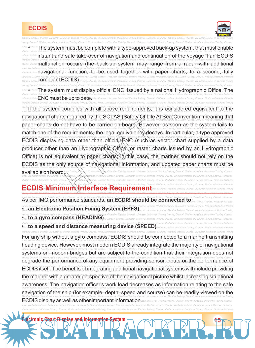 Year: 2016 Language: english Author: Hindustan Institute of Maritime Training Genre: Manual Publisher: Hindustan Institute of Maritime Training Edition: 2016 Format: PDF Quality: Scanned pages Pages count: 122 Description: This book details all the ECDIS topics provided as per IMO Model Course 1.27, STCW 2010.