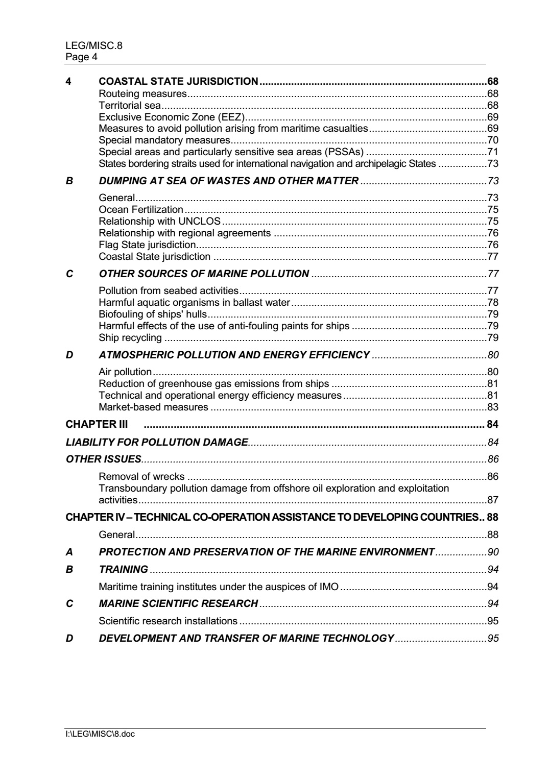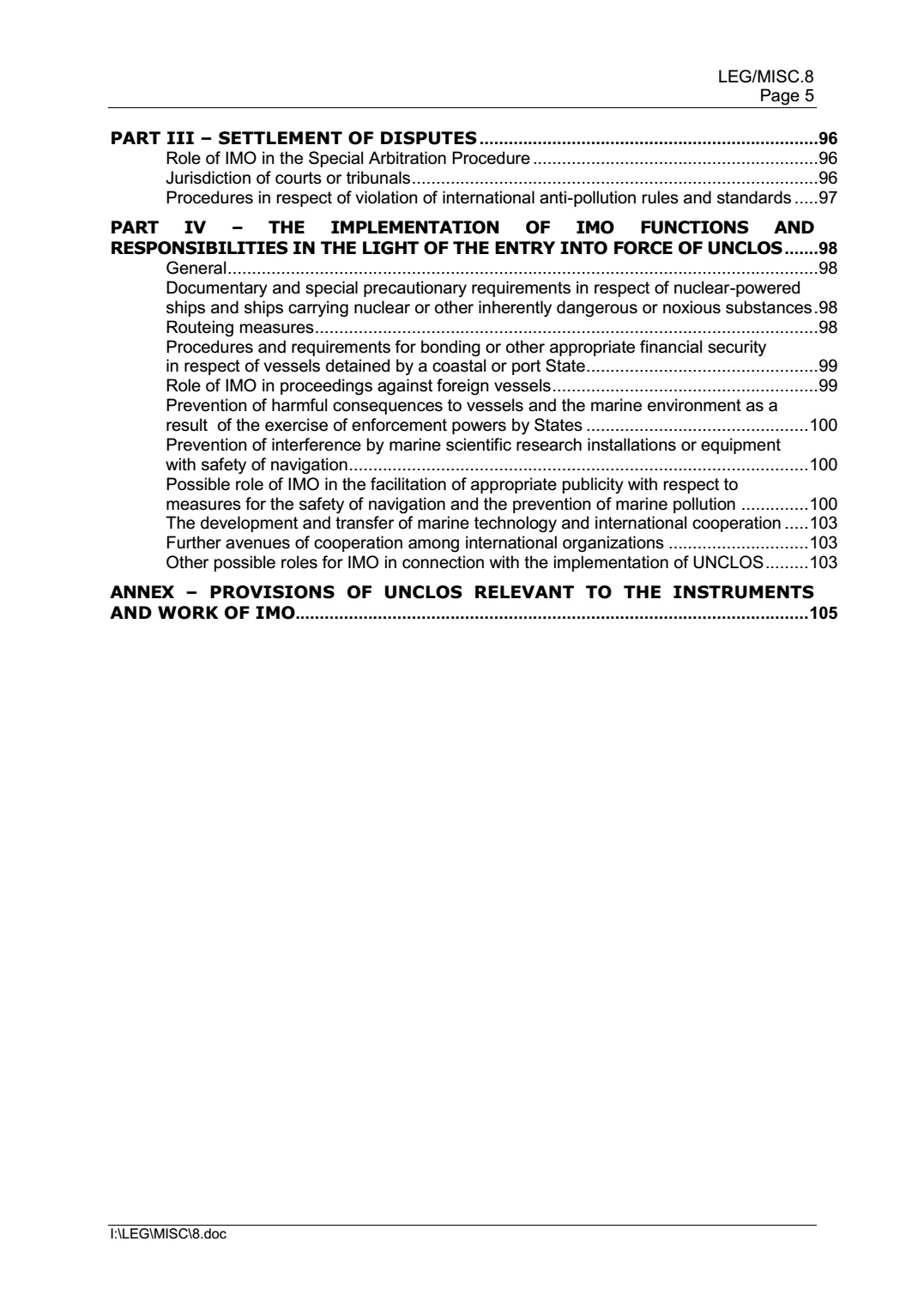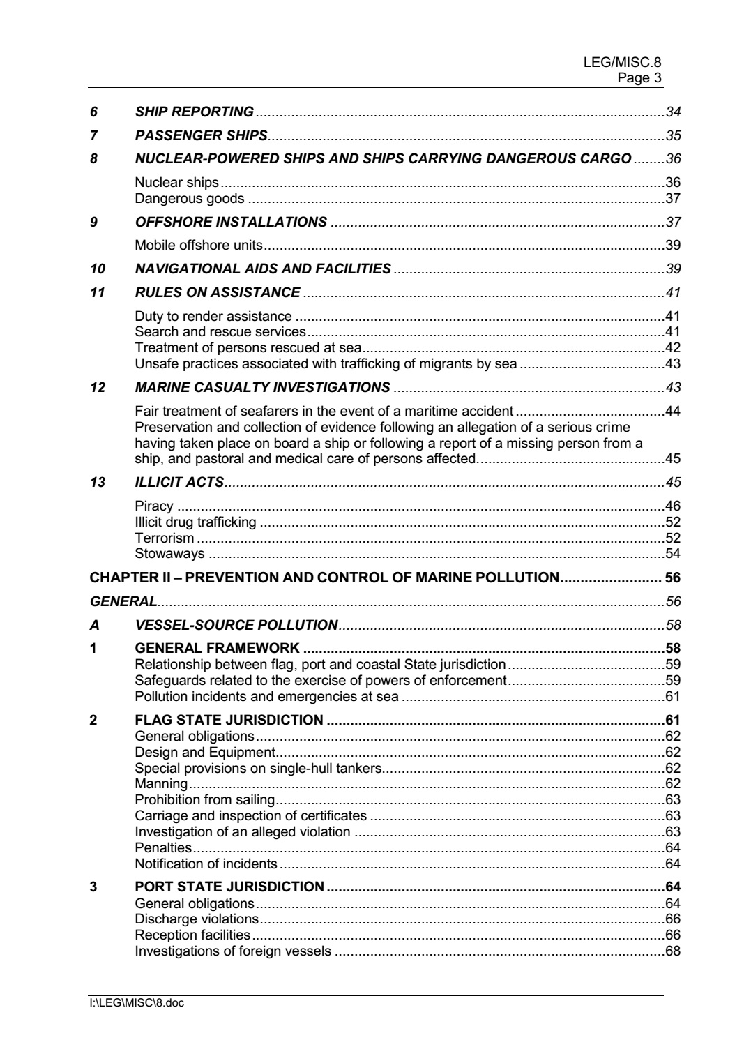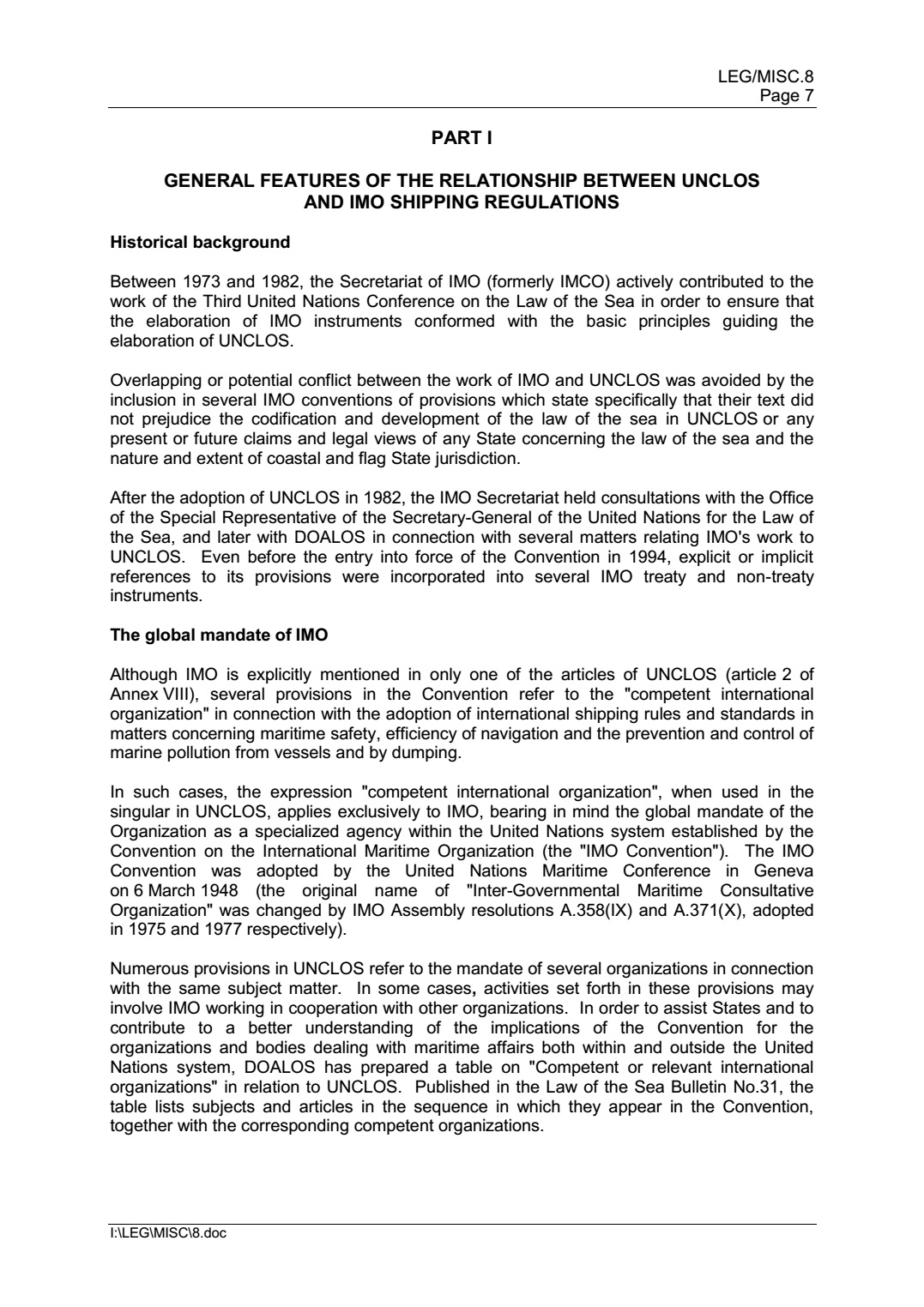 Part I includes comments and concepts of relevance in assessing the general legal framework relating to UNCLOS and the work of IMO and its instruments.