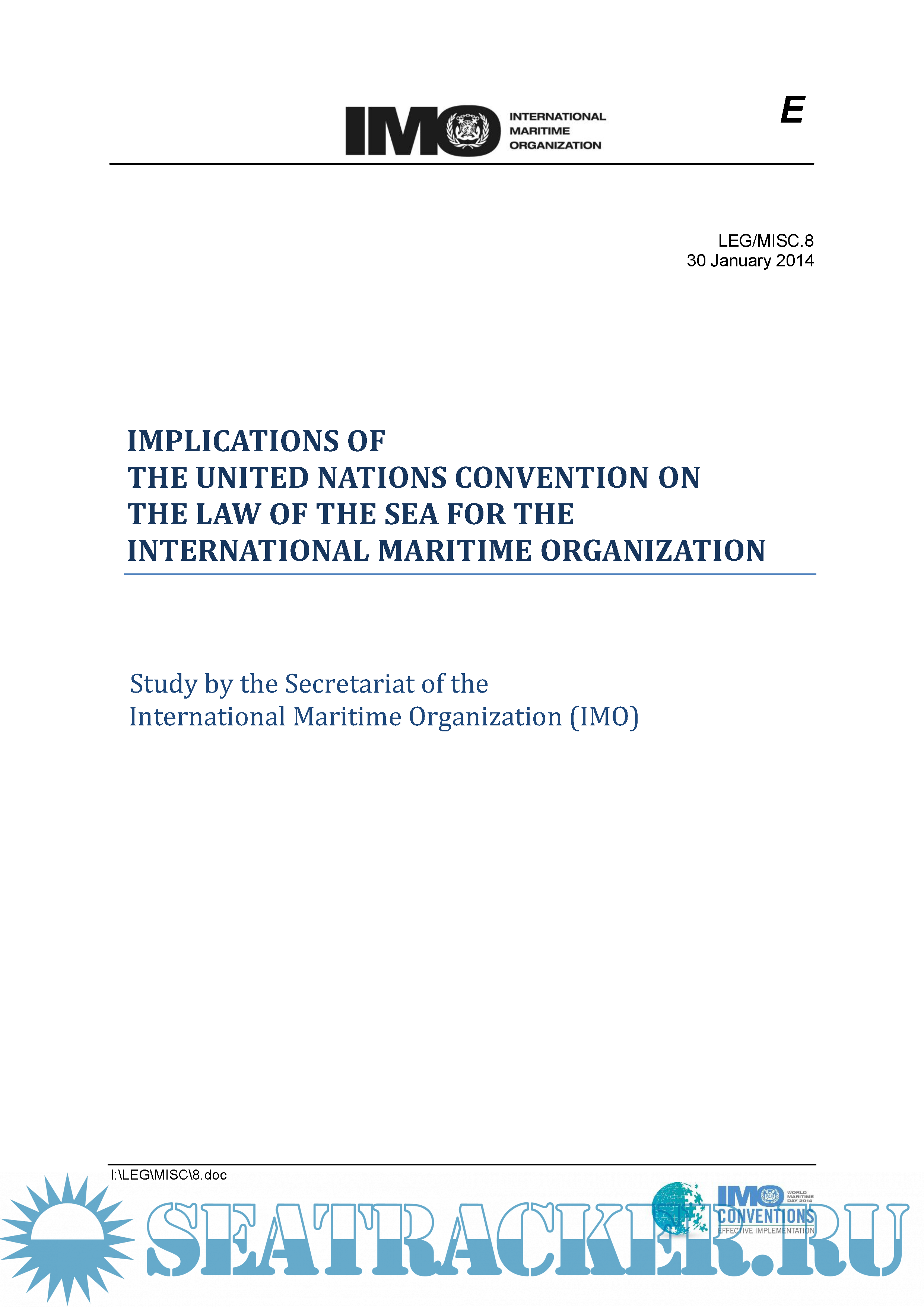 Description: IMPLICATIONS OF THE UNITED NATIONS CONVENTION ON THE LAW OF THE SEA FOR THE INTERNATIONAL MARITIME ORGANIZATION Study by the Secretariat of the International Maritime Organization (IMO). This document is intended to provide a comprehensive overview of the work of the International Maritime Organization (IMO) as it relates to the United Nations Convention on the Law of the Sea ("the Convention" or "UNCLOS"). Originally prepared in 1987 and issued as document LEG/MISC.1, this survey has been substantially revised and updated. The present version updates LEG/MISC.7 by reflecting developments that have taken place from January 2012 to December 2013. It was finalized in consultation with the Division for Ocean Affairs and the Law of the Sea of the Office of Legal Affairs of the United Nations (DOALOS).