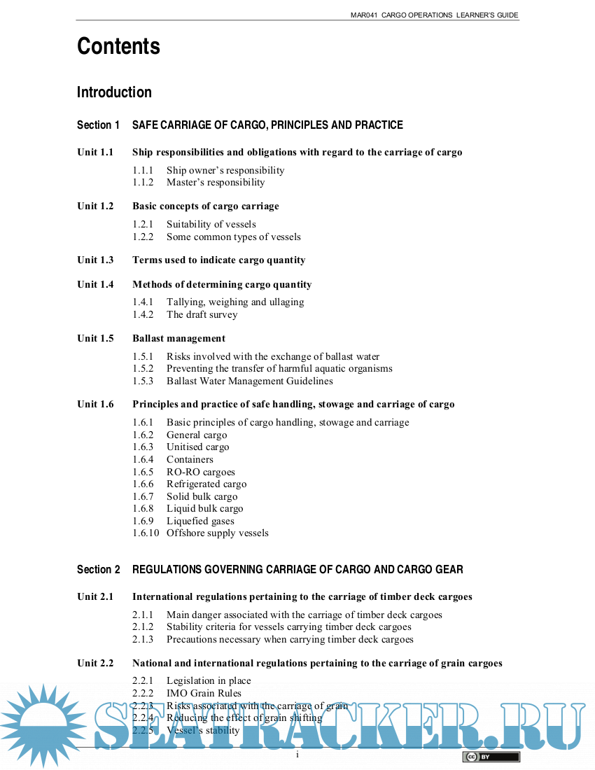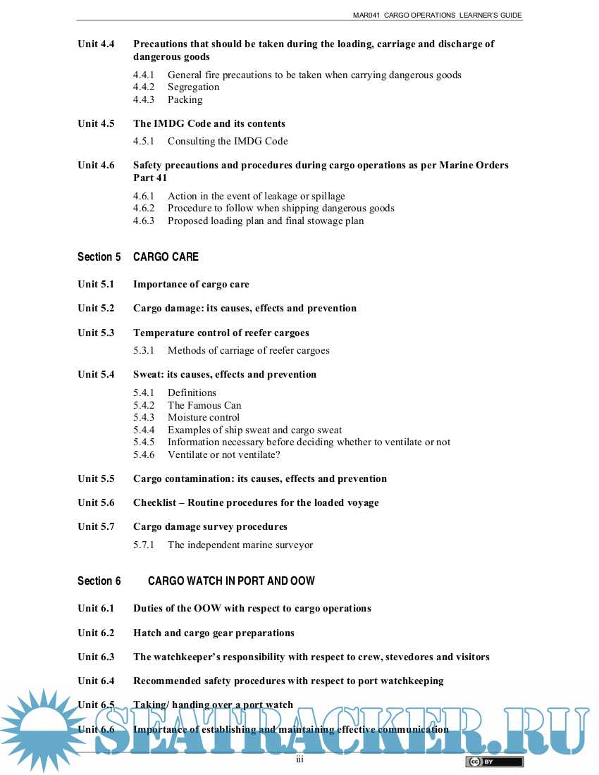 ) Cargo Operations cover the required content for Cargo Operations to Master 3 level.