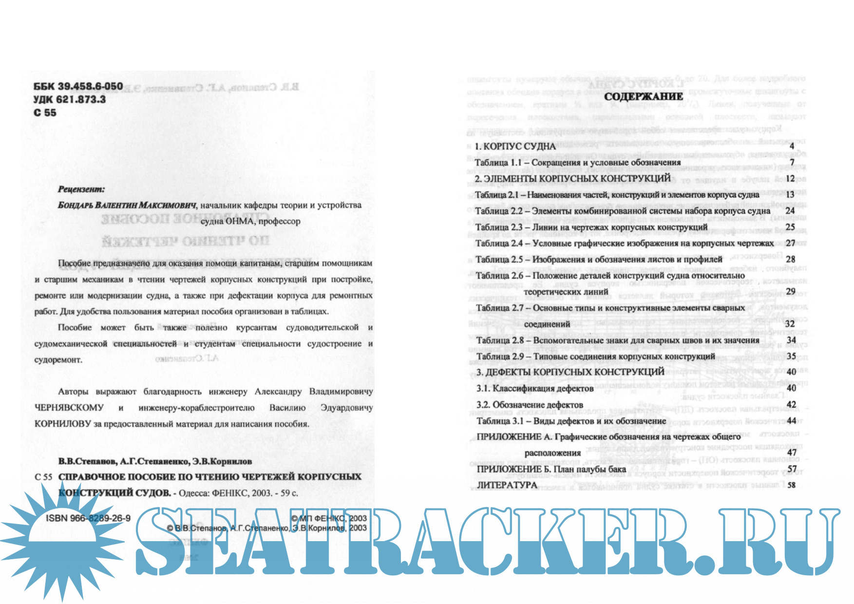Год выпуска: 2003 Язык: Русский, Английский Автор: Степанов В.В. Степаненко А.Г. Жанр: Справочное издание Издательство: Феникс ISBN: 966-8289-26-9 Формат: PDF Качество: Отсканированные страницы Количество страниц: 59 Описание: Пособие предназначено для оказания помощи капитанам, старшим помощникам и старшим механикам в чтении чертежей корпусных конструкций при постройке, ремонте или модернизации судна, а также при дефектации корпуса для ремонтных работ. Для удобства пользования материал пособия организован в таблицах.