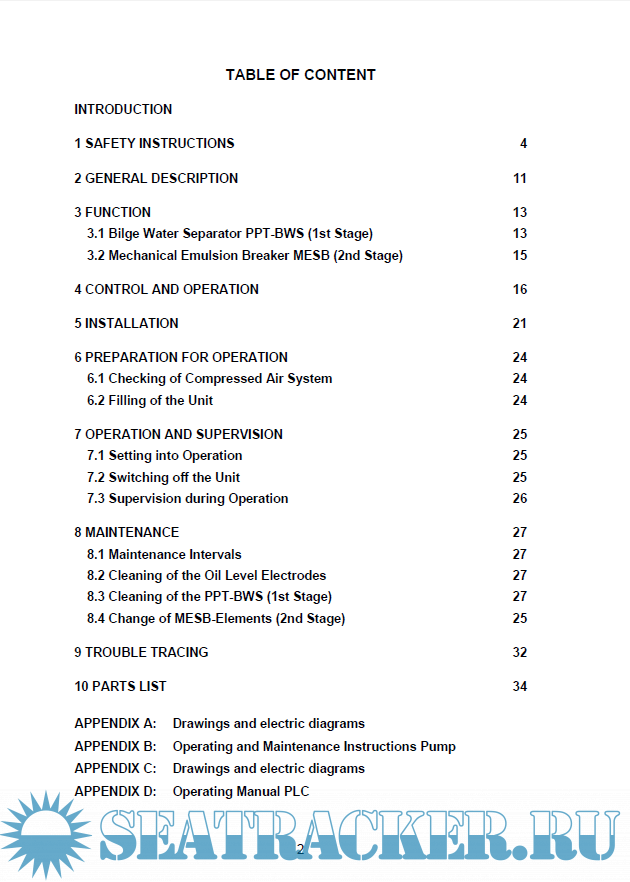 Bilge Water Separator Operating Instruction and Technical Manual - Jowa Germany Gmbh [2009, PDF]