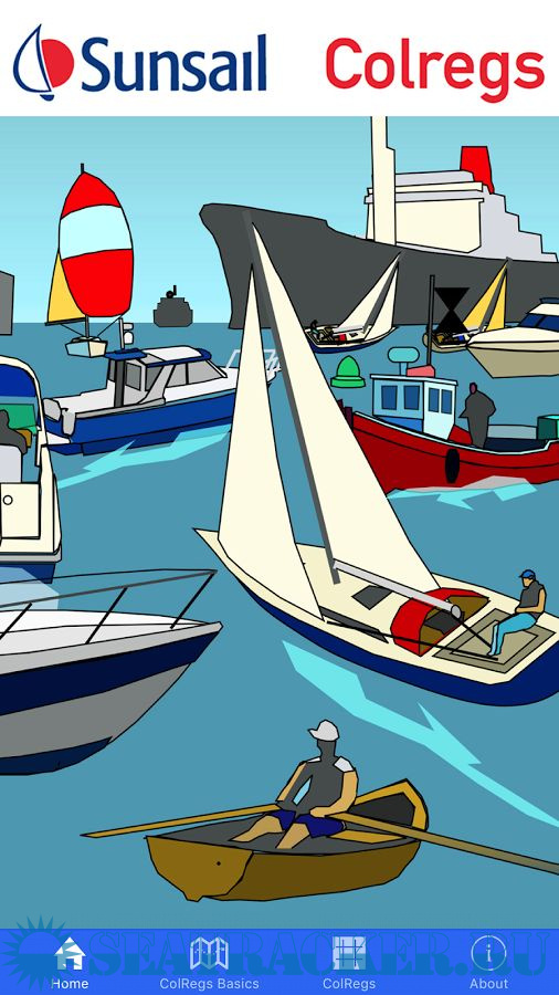 SUNSAIL SAILING SCHOOL provides at-a-glance information to help all boaters learn how to identify other vessels and the activities they are engaged in, day or night. The app clarifies which vessels have priority, with explanatory graphics and captions, in addition to the complete rules.