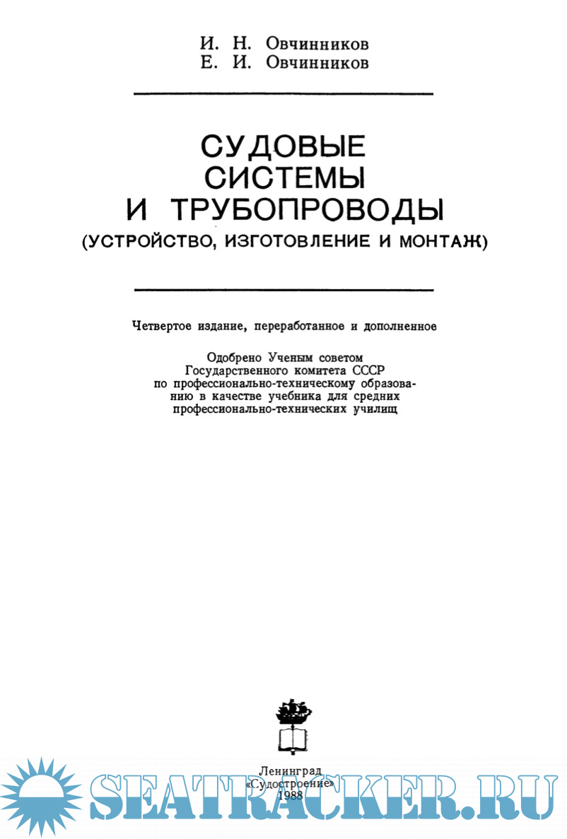 Год выпуска: 1988 Язык: русский Автор: Овчинников И.Н., Овчинников Е.И. Жанр: Учебное пособие Издательство: Судостроение Издание: 4-е издание, перераб. и доп. Формат: PDF Качество: Отсканированные страницы Количество страниц: 312 Описание: В книге дано краткое описание материалов, применяемых для изготовления труб и соединений судовых трубопроводов и систем. Рассмотрены наиболее прогрессивные способы изготовления и монтажа трубопроводов на судне. Подробно описаны конструкции новых типов соединений труб, в том числе бесфланцевых (сварных) и с отбортовкой. Изложены способы изготовления, очистки и изоляции труб с применением созданных за последние годы средств механизации и новой техники, приведены сведения об испытаниях систем.