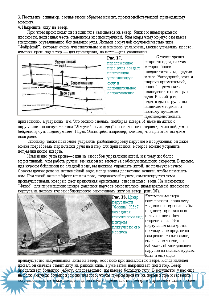 Поменьше перекладывать руль. Оверкиль на ветер. Крен, создаваемый спинакером. Не кренить яхту на лавировке в свежую погоду.