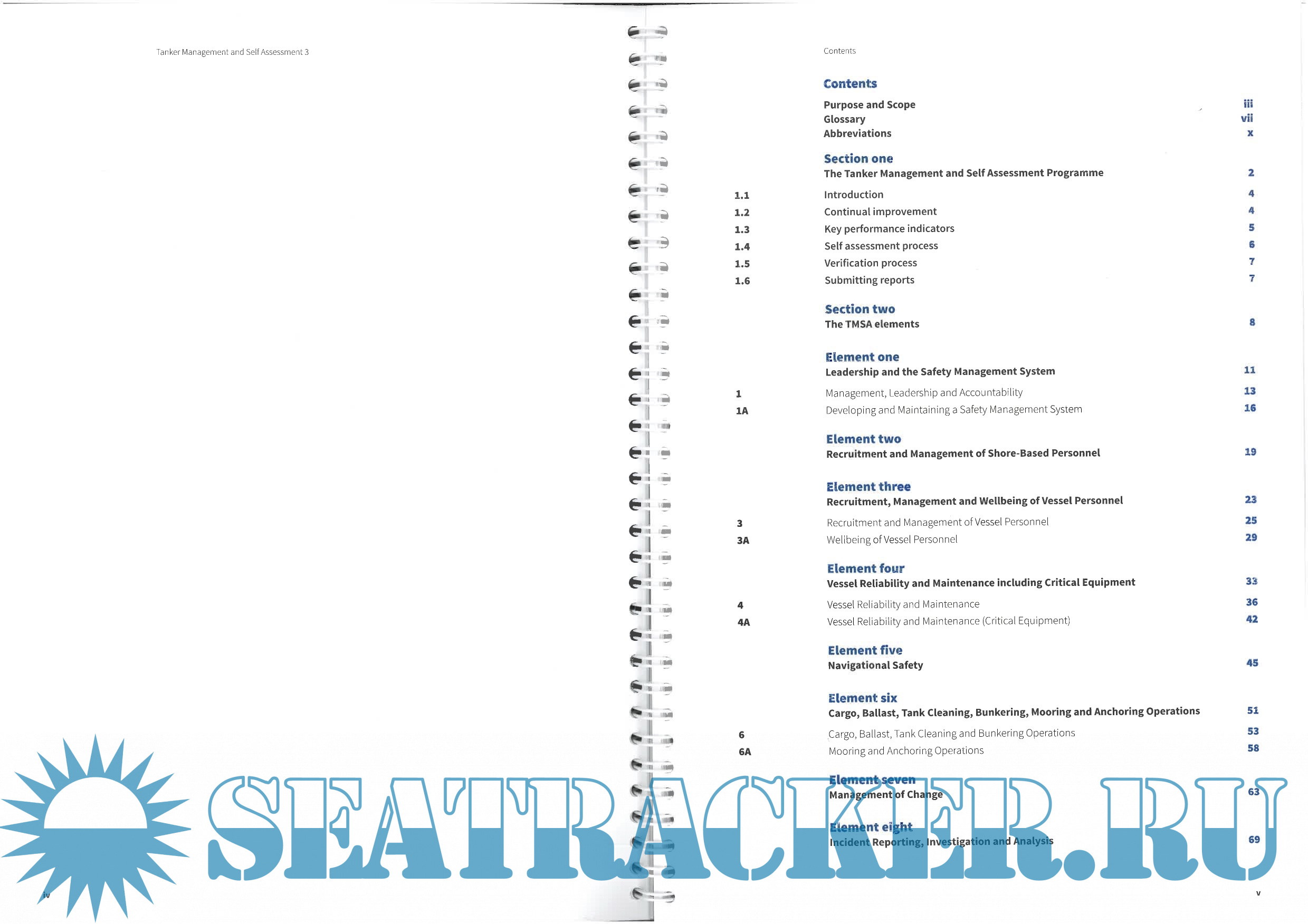The TMSA programme complements IMO Conventions, Codes and Circulars and is intended to encourage self-regulation and promote continuous improvement to enhance the safety of merchant shipping and achieve incident free operations. Implementation of IMO Conventions, Codes and Circulars is achieved by companies establishing an effective safety management system (SMS) covering both ship and shore management processes. An effective SMS is also required for companies to achieve HSSE excellence.