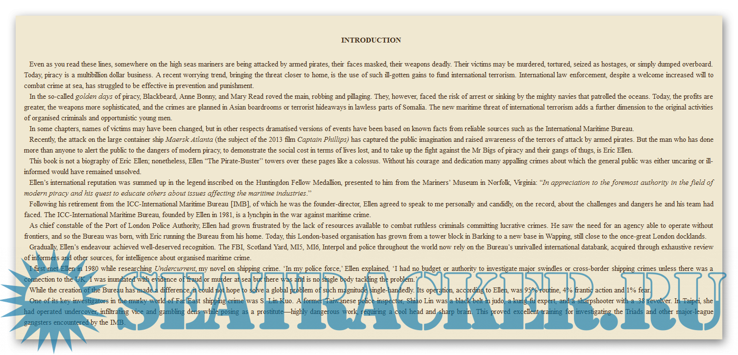 Year: 2017 Language: english Author: Douglas Stwart Genre: История Format: EPUB Quality: eBook Number of pages: 277 Description: Piracy. Although often associated with the antiquated figures of picture books and blockbuster films, modern-day pirates are a very real threat, terrorizing our seas and claiming lives. Additional info: This book is dedicated to those who have suffered the terror of a piracy attack, and to the families of those who have been murdered or suffered at sea while politicians postured.