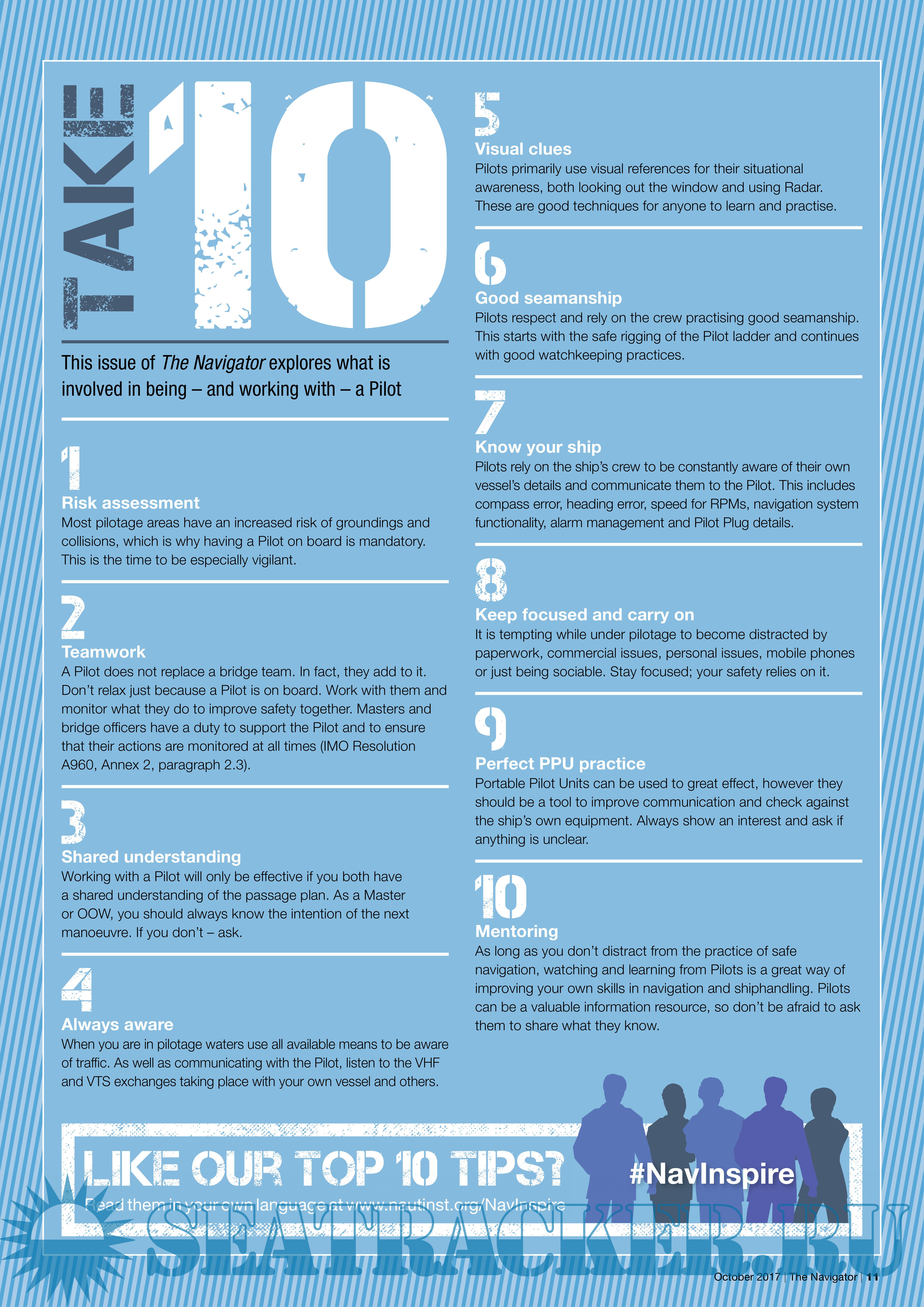 Description: The Navigator is a free publication produced by the Nautical Institute in association with the Royal Institute of Navigation. Each issue focuses upon one particular aspect of navigation such as passage planning, position-fixing, and collision avoidance. All of the issues covered are vitally important to the control of risk and loss prevention. This publication is directed towards improving the knowledge and skills of young professional marine navigators and reflects the need for that role to be recognised, valued and supported.