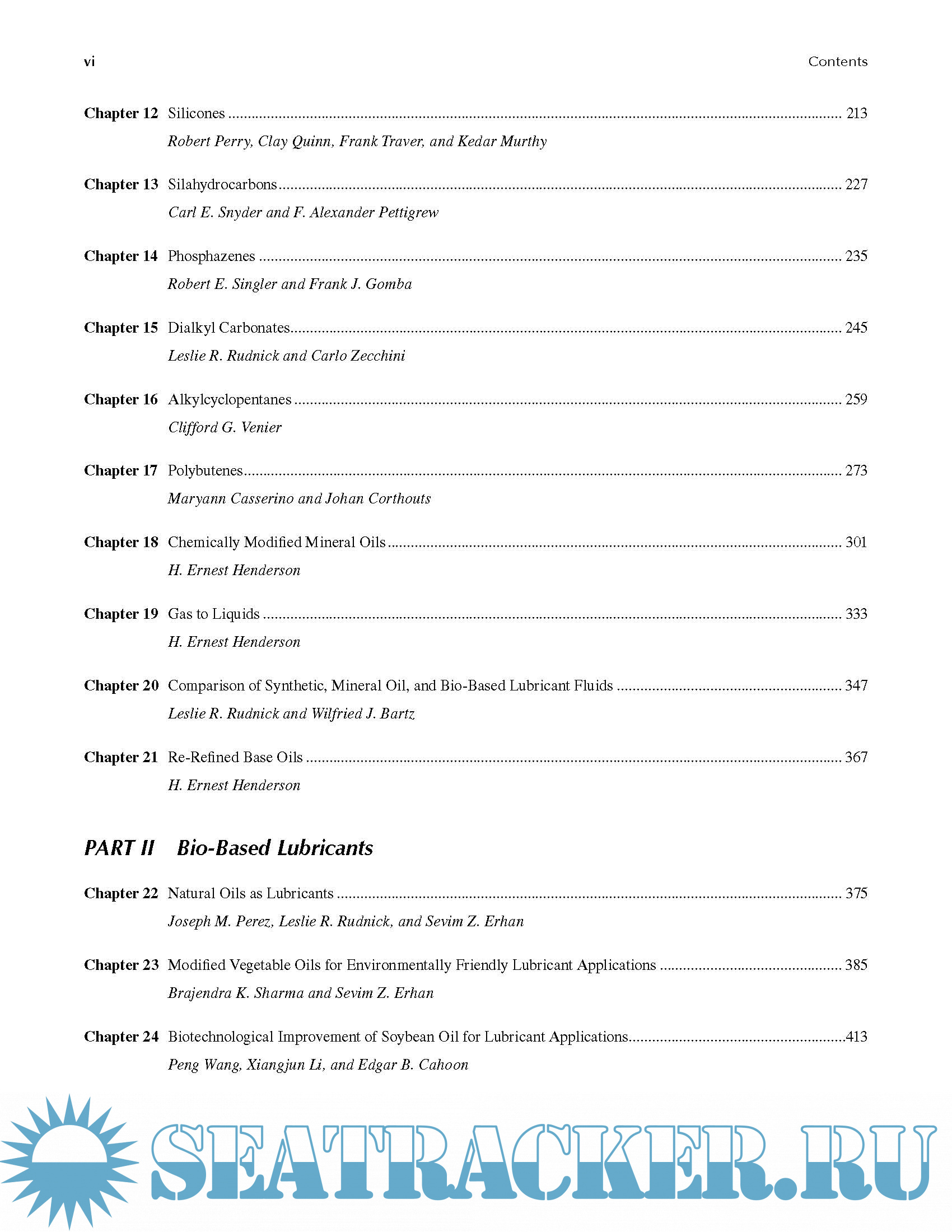 Year: 2013 Language: english Author: Leslie R. Rudnick Genre: Technical book Edition: 2nd Format: PDF Quality: eBook Pages count: 1018 Description: This book is comprised of a total of 55 chapters and includes a CD of the last chapter, a compilation of Internet urls that can be directly accessed from the entries. This second edition follows the format of the first edition, but it has greatly expanded and updated to include new chapters or chapters with new authors on automatic and continuously variable transmission fluids, fluids for food-grade applications, lubricants for powder metal bearings, natural gas engine oils, natural gas and process compressor oils, and re- refined oils. The book is divided into four parts as follows: Part I—Fluids, Part II—Bio-Based Lubricants, Part III—Applications, Part IV–Trends, followed by Appendices.