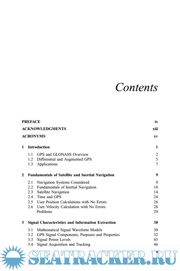 Year: 2001 Language: english Author: M.Grewal & L.Weill Publisher: A John Wiley & Sons ISBN: 0-471-20071-9 Format: PDF Quality: eBook Pages count: 409 Description: Written by recognized authorities in the field, this book provides everybody with a working familiarity with the theory and contemporary applications of Global Positioning Systems (GPS), Inertial Navigational Systems, and Kalman filters. Throughout, the focus is on solving real-world problems, with an emphasis on the effective use of state-of-the-art integration techniques for those systems, especially the application of Kalman filtering. To that end, the authors explore the various subtleties, common failures, and inherent limitations of the theory as it applies to real-world situations, and provide numerous detailed application examples and practice problems, including GPS-aided INS, modeling of gyros and accelerometers, and WAAS and LAAS.