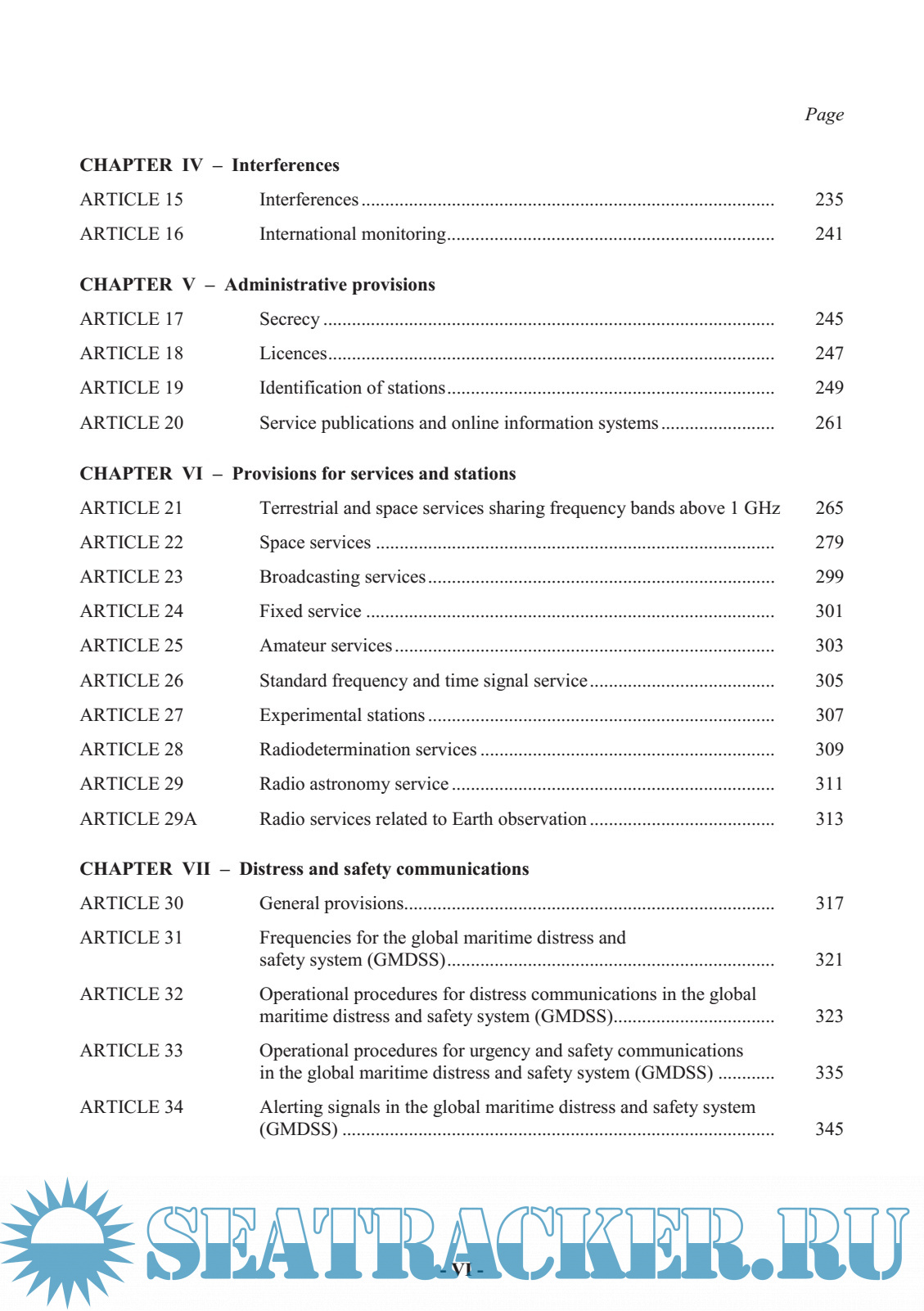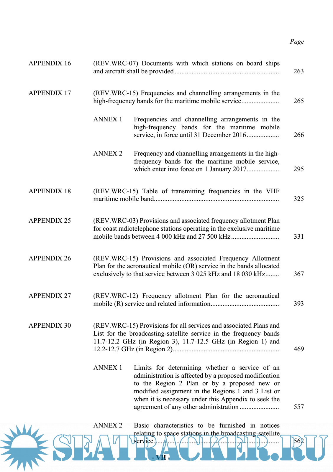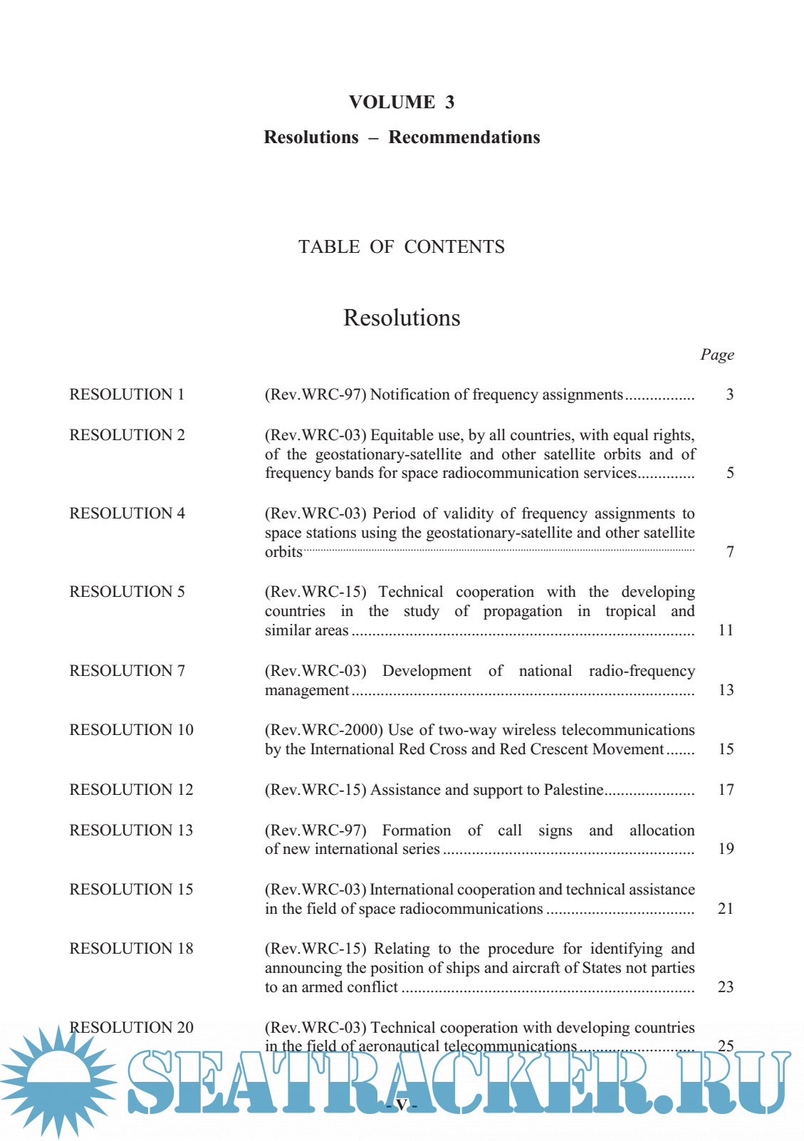 Description: This revision of the Radio Regulations, complementing the Constitution and the Convention of the International Telecommunication Union, incorporates the decisions of the World Radiocommunication Conferences of 1995 (WRC-95), 1997 (WRC-97), 2000 (WRC-2000), 2003 (WRC-03), 2007 (WRC-07), 2012 (WRC-12) and 2015 (WRC-15). The majority of the provisions of these Regulations shall enter into force as from 1 January 2017; the remaining provisions shall apply as from the special dates of application indicated in Article 59 of the revised Radio Regulations.