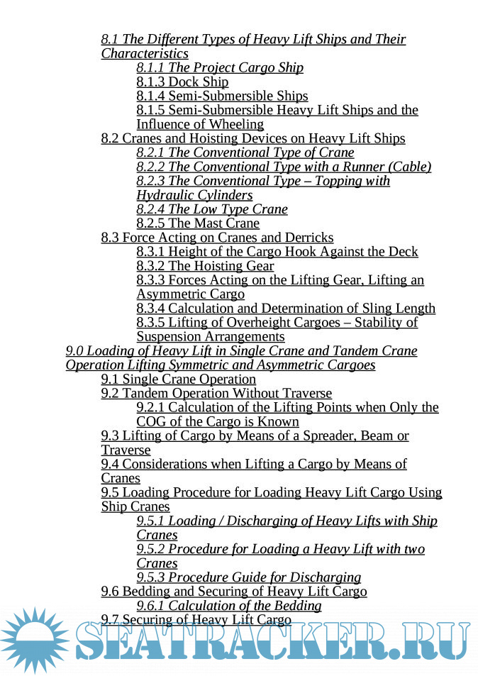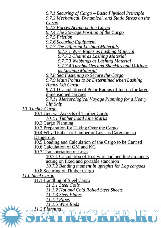 Description: A Guide for Loading, Handling, Stowage, Securing, and Transportation of Different Types of Cargoes, Except Liquid Cargoes and Gas. The most common cargoes and their stowage and calculation are described - Container Cargoes, Reefer Cargoes, Bulk Cargoes including Grain and Grain products, Heavy Lift Cargoes, Timber Cargoes, Steel Cargoes and Ro-Ro Cargoes. For each cargo the stowage and loading principles are described as well as the securing of these cargoes which includes all necessary calculations.