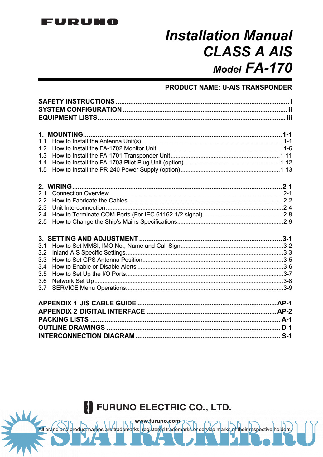Furuno Class A AIS FA-170 Installation Manual - Furuno [2019, PDF]