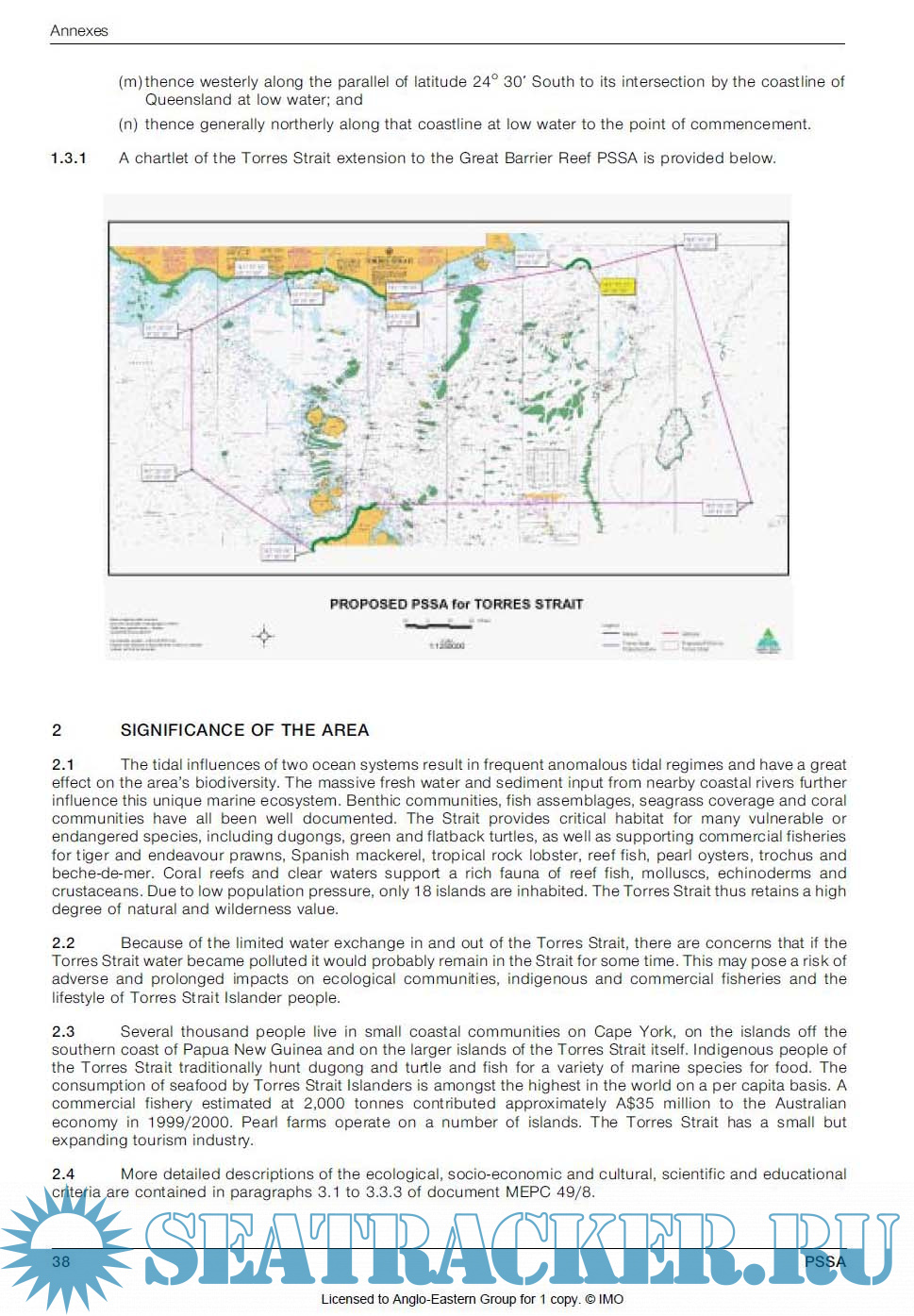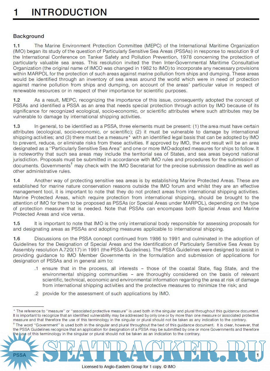 Description: Compilation of all guidance documents and PSSAs designated by IMO since 1990 A Particularly Sensitive Sea Area (PSSA) is an area of the marine environment that needs special protection through action by the International Maritime Organization (IMO) because of its significance for recognized ecological, socio-economic, or scientific attributes where such attributes may be vulnerable to damage by international shipping activities. At the time of designation of a PSSA, an associated protective measure (APM), which meets the requirements of the appropriate legal instrument establishing such measure, must have been approved or adopted by IMO to prevent, reduce, or eliminate the threat or identified vulnerability.