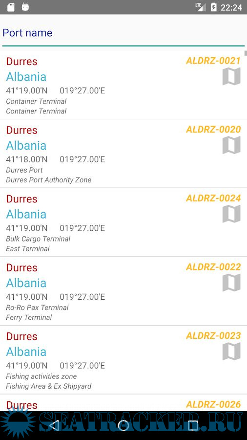 Description: This small application contains port and facilities database. Each record listed with UN\LOCODE, short description of facility, and location, which can be shown on vector chart (available offline).