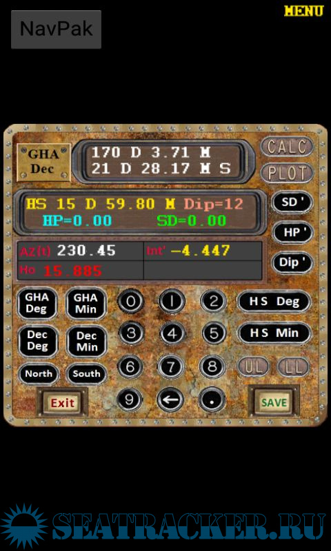 Includes Almanac, sight reduction, plotting, great circles and Zenith Star Navigation. Also has a star/planet Identifier, DR calculator, and TSD calculator.