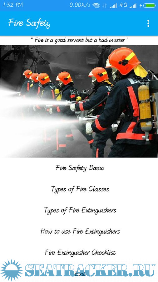 Year: 2017 Version: 1.2 Developer: Arunkumar Babu Platform: Android System Requirements: Android 4.0 or higher Localization: english Crack: Not needed Description: Fire safety is the set of practices intended to reduce the destruction caused by fire. Fire safety measures include those that are intended to prevent ignition of an uncontrolled fire, and those that are used to limit the development and effects of a fire after it starts.