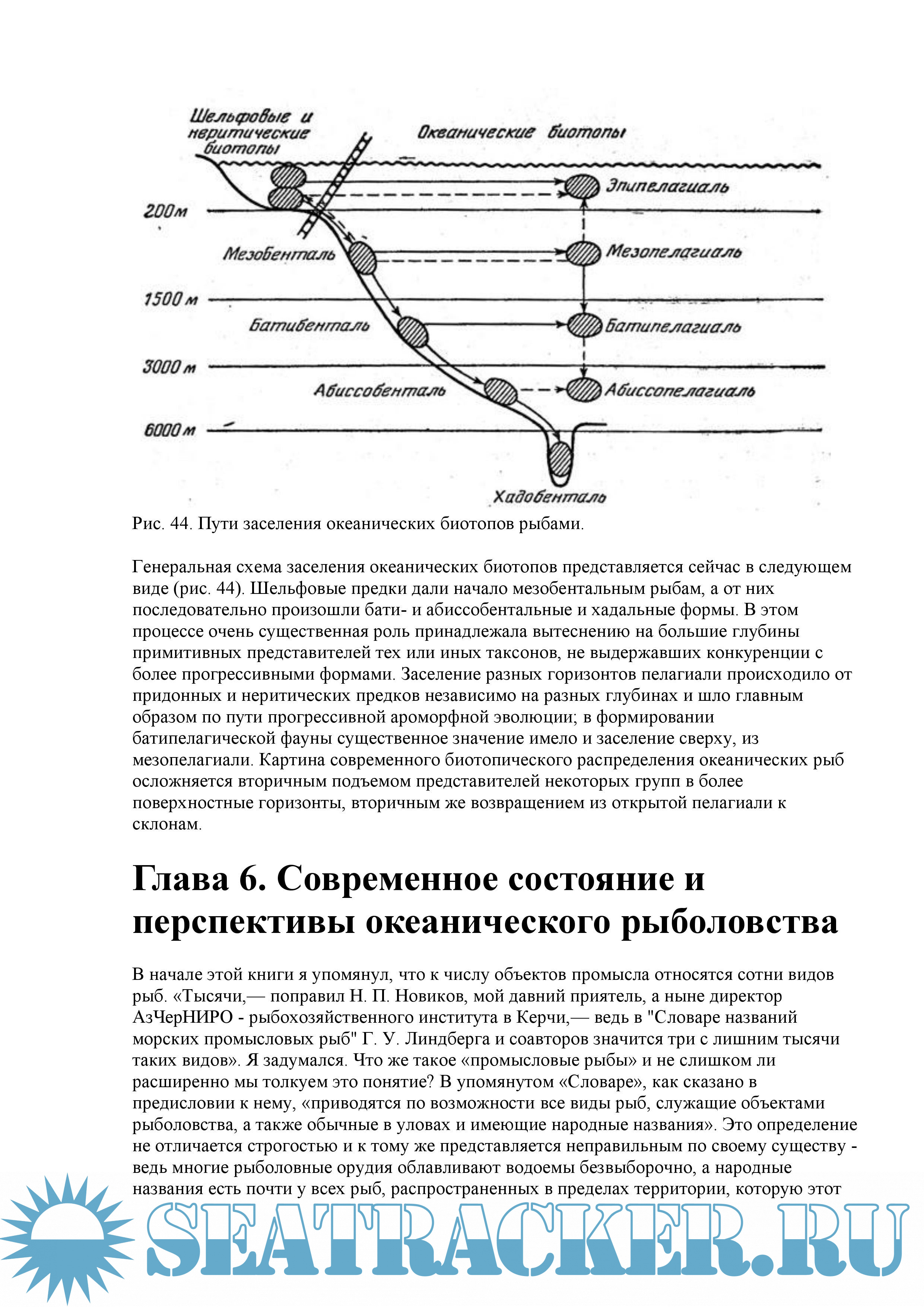 Описание: В книге весьма удачно и доходчиво дается представление о структуре водных масс и вергентных зон океана как биотопа в соответствии и в развитие концепции К. В. Беклемишева об ареалах планктонных организмов. Не менее интересно и логично обоснование гипотезы автора о происхождении и истории формирования ихтиофауны океанских глубин. Книга написана скорее научным, чем популярным языком, но читается с интересом и легко, несмотря на то что сложный материал излагается полноценно, без каких-либо упрощений. Это безусловно повышает ее познавательную ценность. Серьезный и довольно лаконичный текст книги часто прерывается отступлениями, в которых автор живо и непосредственно делится с читателем наиболее интересными впечатлениями и эпизодами из своей богатой экспедиционной практики. Эти отступления, набранные петитом, очень оживляют книгу и вполне оправдывают ее издание в научно-популярной серии.