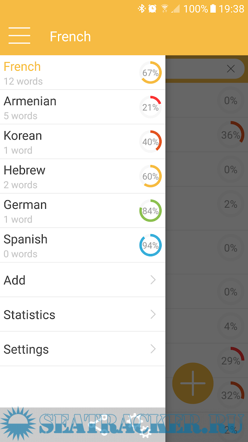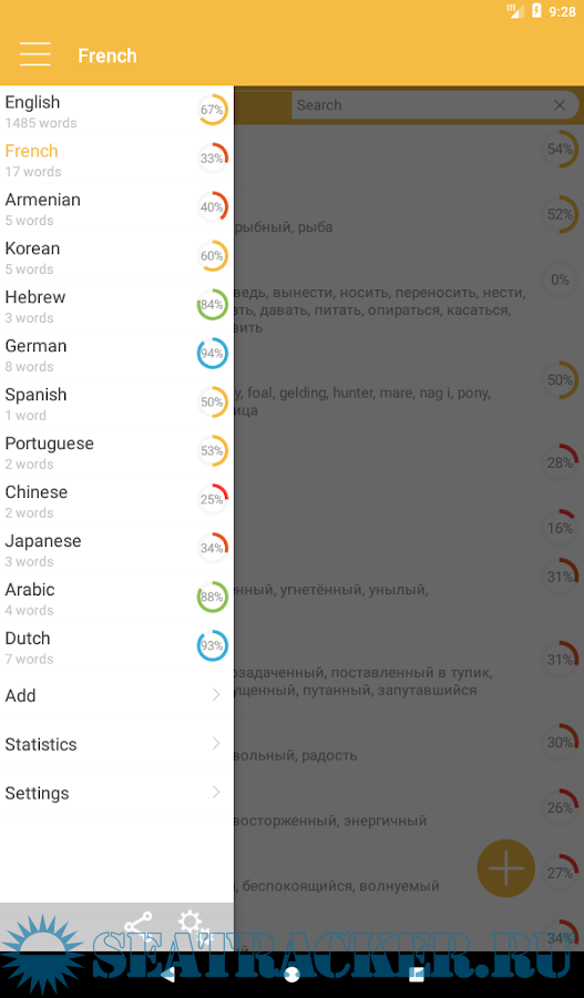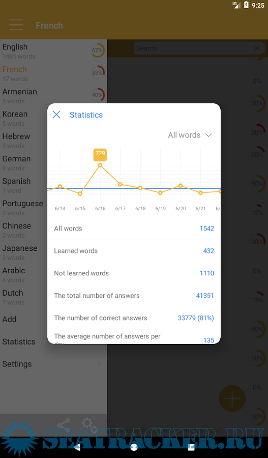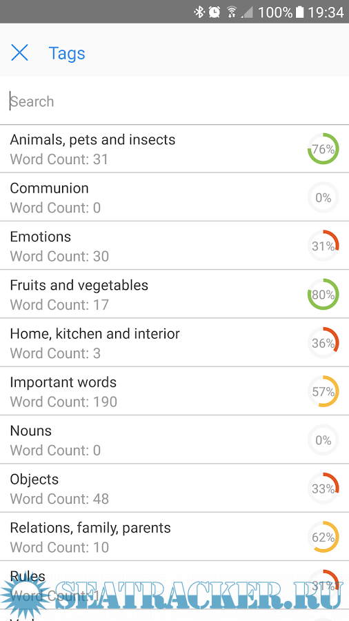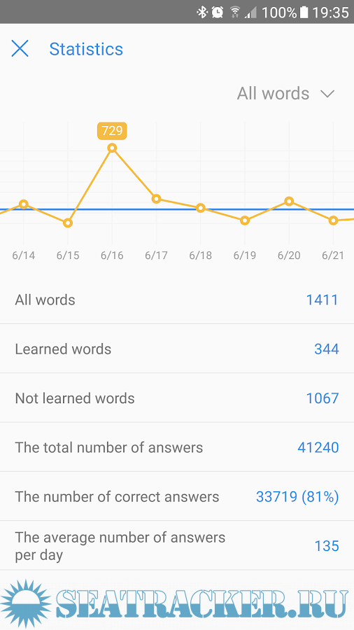 • 6 types of training: word search, writing the words, searching for a translation, comparison of the studied words and its translation;