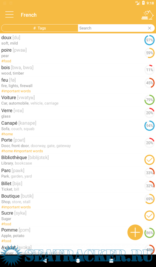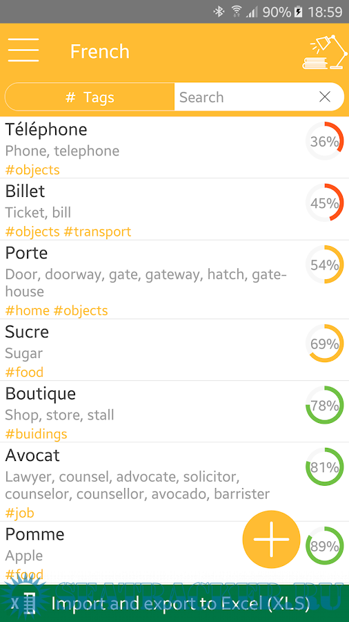 • Completely learned words can be hidden or deleted from the main list of study;