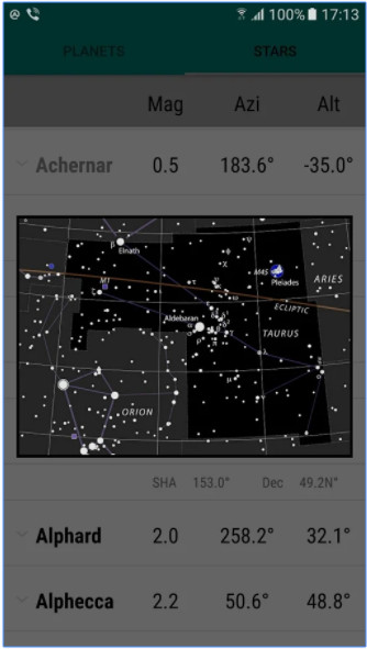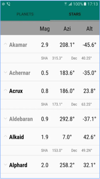 Description: The application calculates the Sun, Planets and Stars azimuth based on observer's location and time of observation.
