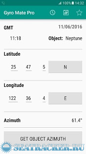 Year: 2017 Version: 1.13 Developer: vlad.zdx Platform: Android 64-bit OS compatibility: unknown Localization: multilingual Crack: Not needed Description: The application calculates the Sun, Planets and Stars azimuth based on observer's location and time of observation. No additional publications required: nautical almanac, etc. Once the azimuth is calculated, entering gyro bearing, heading, magnetic heading, variation will produce the result summary with all data required to keep the Compass Observation Book in right way. "Star Adviser", this new option will help you to locate the objects and select the best one for bearing; This will also allow to predict the planets and stars location, so you can plan your measurements. The "Star Adviser" will indicate the available planets by text color as well. Available planets means: the one is bright enough to see by naked eye (magnitude < 6) and it is above horizon. Moon phase added.