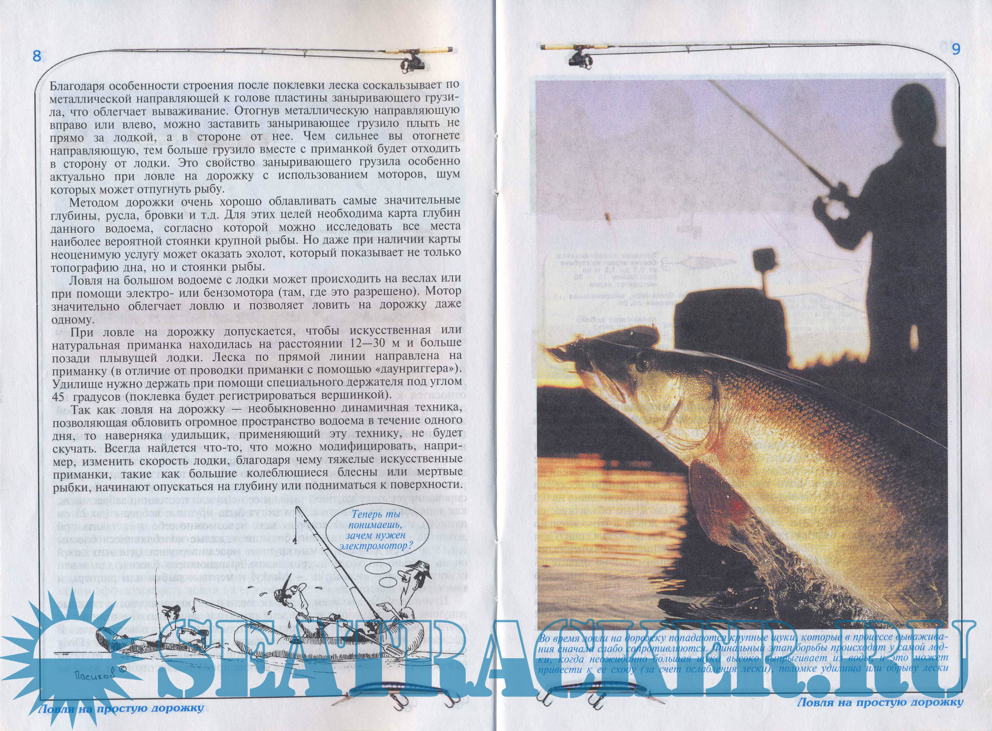 ЛОВЛЯ НА ПРОСТУЮ ДОРОЖКУ Ловля на простую дорожку Ловля на дорожку со специальным заныриваюшим грузом Ловля на дорожку с использованием эхолота ЛОВЛЯ НА ДОРОЖКУ С ДАУНРИГГЕРОМ Ловля на дорожку с даунриггером Оснащение Места для ловли Техника ловли Проводка снасти ПРИМАНКИ ДЛЯ ЛОВЛИ НА ДОРОЖКУ И ДАУНРИГГЕР Приманки для ловли на дорожку и даунриггер Воблеры Колебалки Вертушки