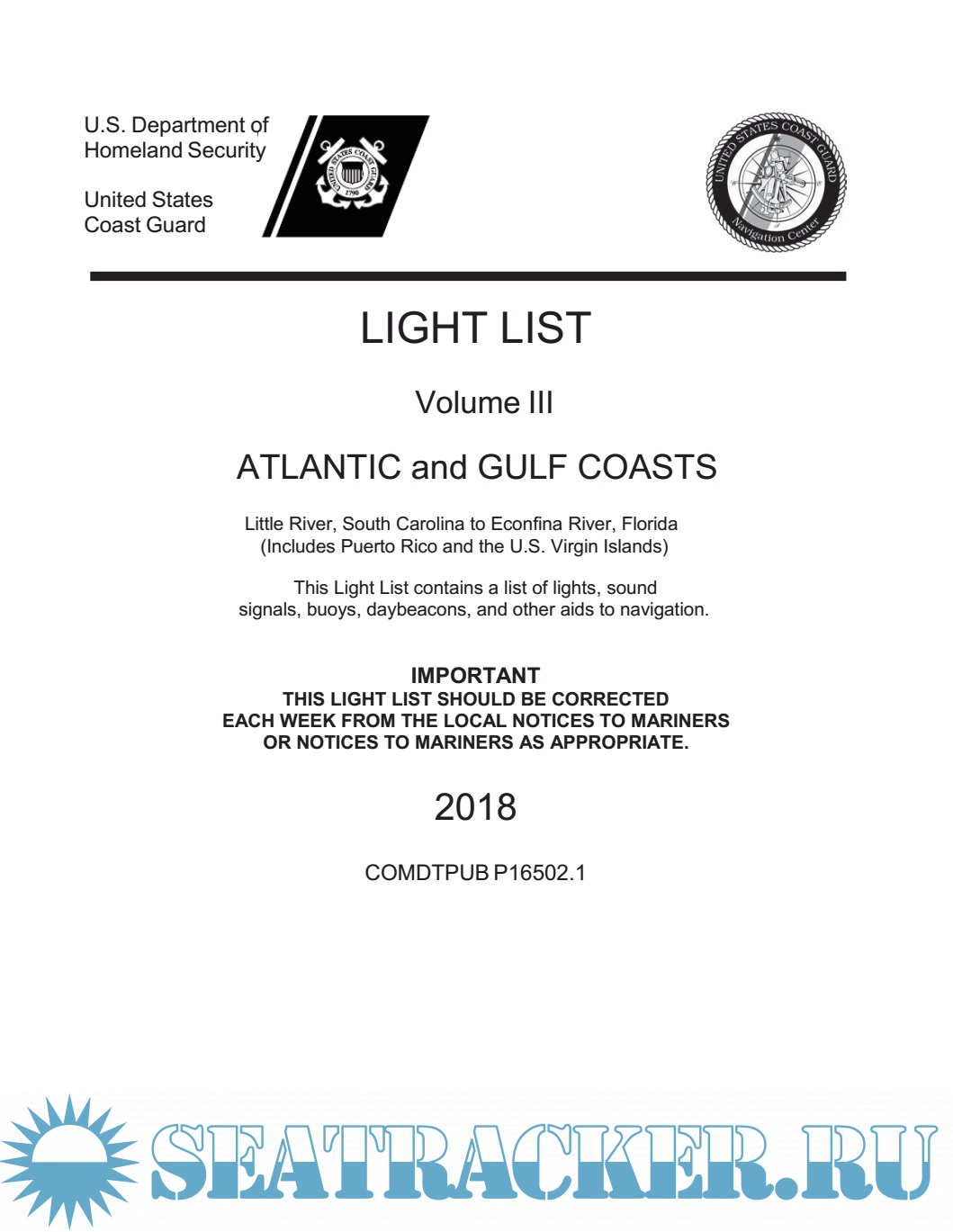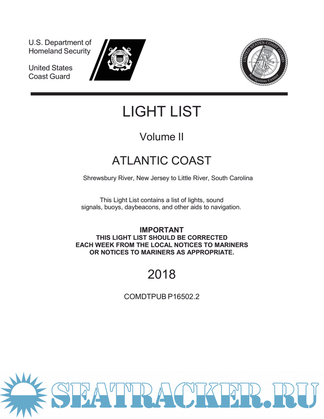 Description: The USCG Light List is provided annually and is intended to furnish more complete information concerning aids to navigation than can be conveniently shown on charts. These publications contain a list of lights, sound signals, buoys, daybeacons, and other aids to navigation.