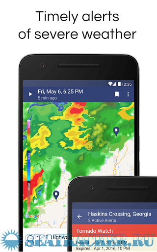 Year: 2018 Version: 1.11 Developer: Apalon Apps Platform: Android System Requirements: Android 4.1+ Localization: multilingual Crack: N/A Description: Get a powerful yet easy-to-use weather station right on your device with Weather Radar & Alerts. Real-time animated weather radar images on a highly interactive map enhanced with severe weather warnings provide accurate weather forecast and don’t let bad weather take you by surprise. “Прогноз погоды и Радар”– это мощная и простая в использовании метеостанция для Android. Следите за прогнозом осадков на интерактивной карте, дополненной точными погодными данными и прогнозом погоды для вашего города. Плохая погода больше не застанет вас врасплох!