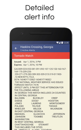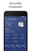 The app reflects the real-time weather conditions and provides you with detailed meteo data you need to know: current and "Feels Like" temperature, the chance of precipitation and humidity info, pressure changes, wind speed and wind direction, visibility details and more.Take a look at current weather conditions or take the most of the top-notch functionality of the weather radar. Get a push notification whenever an alert is issued (tornadoes, flood warnings, snow storms, and more) without opening the app!