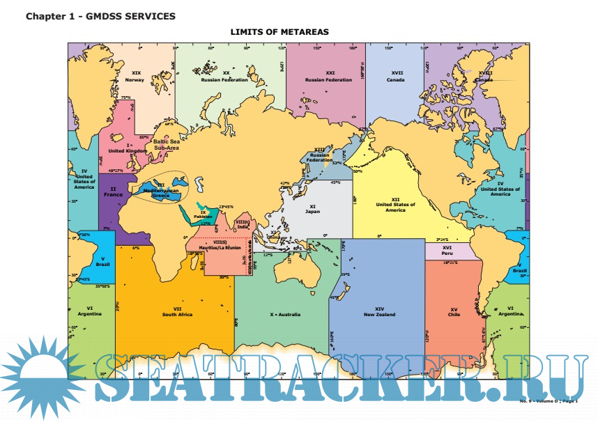 To ensure complete area coverage and adequacy of services, the Oceans and Seas have been divided into METAREAS. This Chapter provides charts indicating the limits of METAREAS together with the area co-ordinates followed by the transmission schedule for the full GMDSS service.