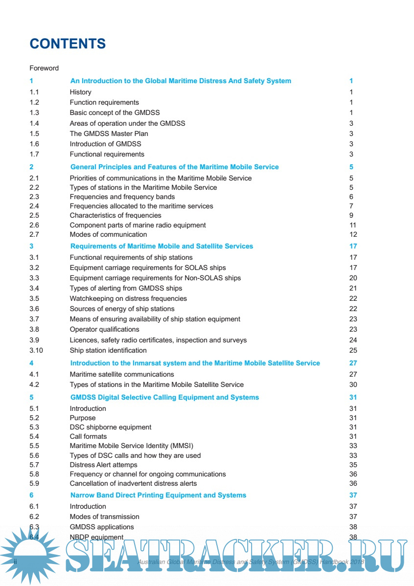 Year: 2018 Language: english Author: Australian Maritime Safety Authority (AMSA) Genre: Handbook Format: PDF Quality: eBook Pages count: 215 Description: This handbook has been produced by the Australian Maritime Safety Authority (AMSA), and is intended for use on ships that are: • compulsorily equipped with GMDSS radiocommunication installations in accordance with the requirements of the International Convention for the Safety of Life at Sea Convention 1974 (SOLAS) and Commonwealth or State government marine legislation • voluntarily equipped with GMDSS radiocommunication installations. It is the recommended textbook for candidates wishing to qualify for the Australian GMDSS General Operator’s Certifcate of Profciency. This handbook replaces the tenth edition of the GMDSS Handbook published in September 2013, and has been amended to reflect: • changes to regulations adopted by the 2015 International Telecommunication Union (ITU) World Radiocommunications Conference • changes to Inmarsat services • an updated AMSA distress beacon registration form • changes to various ITU Recommendations • changes to the publications published by the ITU • developments in Man Overboard (MOB) devices • clarifcation of GMDSS radio log procedures • general editorial updating and improvements. Procedures outlined in the handbook are based on the ITU Radio Regulations, on radio procedures used by Australian Maritime Communications Stations and Satellite Earth Stations in the Inmarsat network. Careful observance of the procedures covered by this handbook is essential for the effcient exchange of communications in the marine radiocommunication service, particularly where safety of life at sea is concerned. Special attention should be given to those sections dealing with distress, urgency, and safety. Additional info: No provision of this handbook or the ITU Radio Regulations prevents the use, by a ship in distress, of any means at its disposal to attract attention, make known its position and obtain help. Similarly, no provision of this handbook or the ITU Radio Regulations prevents the use, by ships engaged in search and rescue operations, of any means at their disposal to assist a ship in distress.