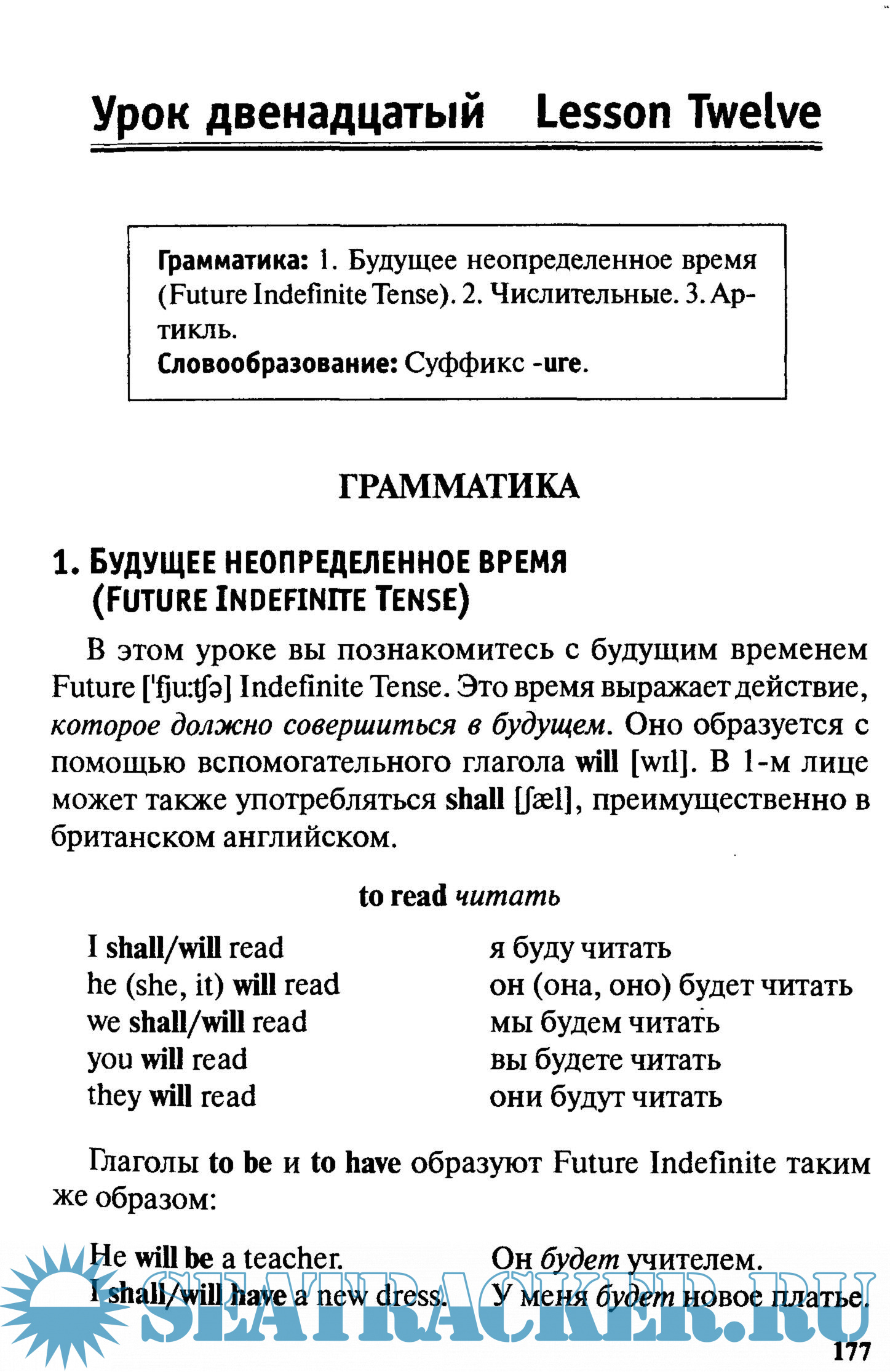 Грамматика: 1. Будущее неопределенное время (Future Indefinite Tense). 2. Числительные. 3. Артикль. Словообразование: Суффикс -иге. Текст: The Air.
