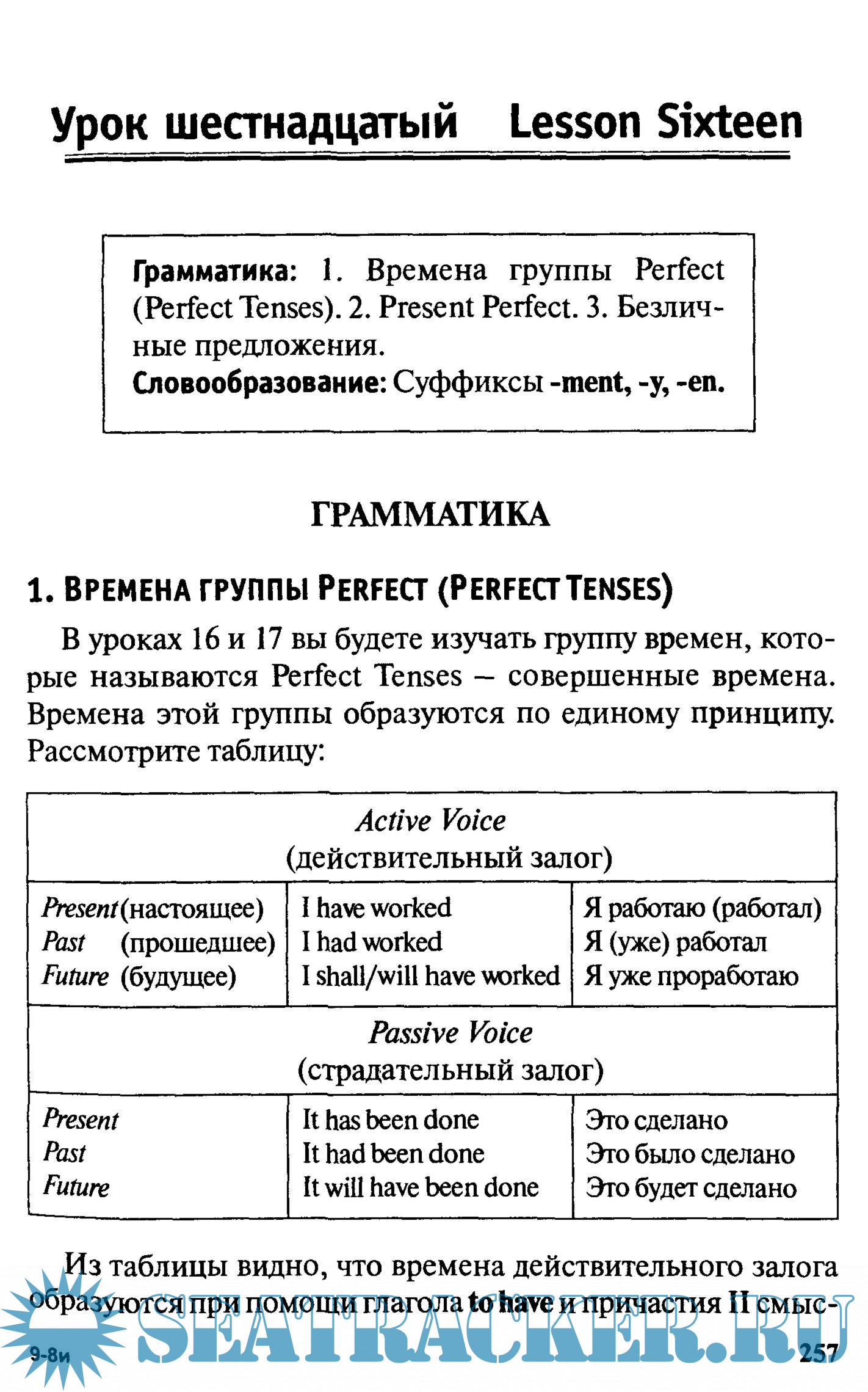 Грамматика: 1. Времена группы Perfect (Perfect Tenses). 2. Present Perfect. 3. Безличные предложения. Словообразование: Суффиксы -ment, -у, -en. Текст: Power From the Sun.
