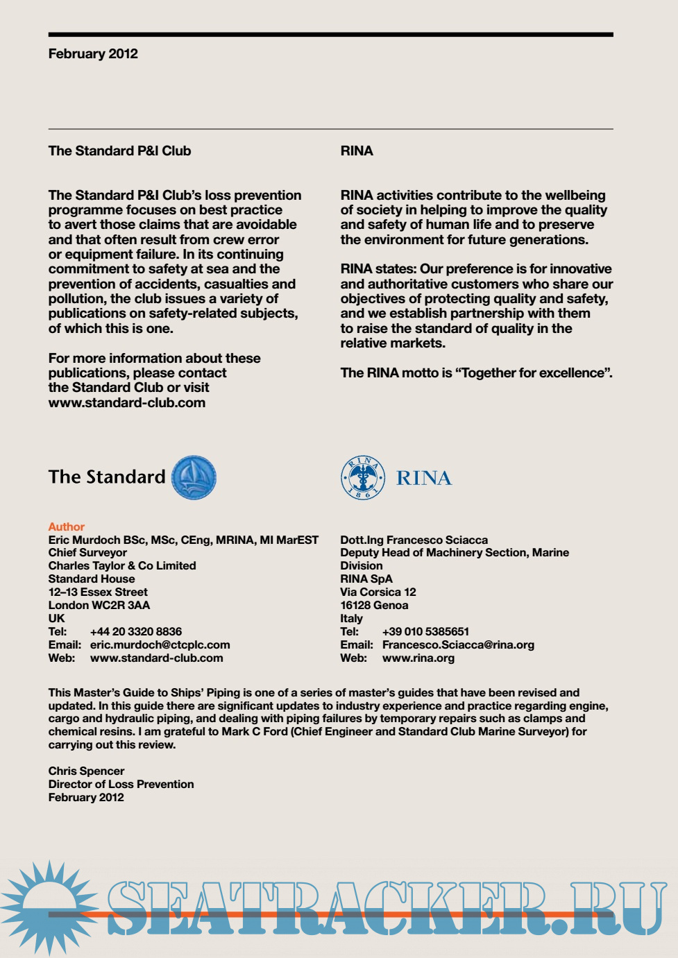 Year: 2012 Language: english Author: Eric Murdoch Genre: Guide Edition: 2 Format: PDF Quality: eBook Pages count: 42 Description: In this guide there are significant updates to industry experience and practice regarding engine, cargo and hydraulic piping, and dealing with piping failures by temporary repairs such as clamps and chemical resins.