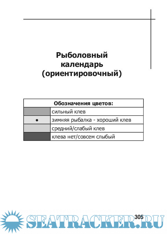 КАЛЕНДАРЬ РЫБОЛОВА . . . . . . . . . . . . . 305