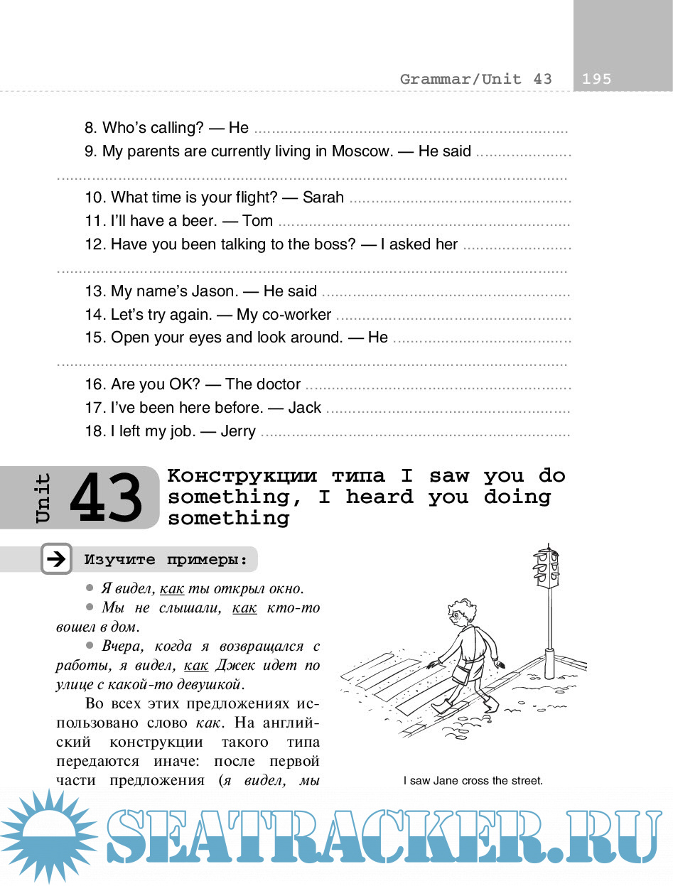 43. Конструкции типа I saw you do something, I heard you doing something 195
