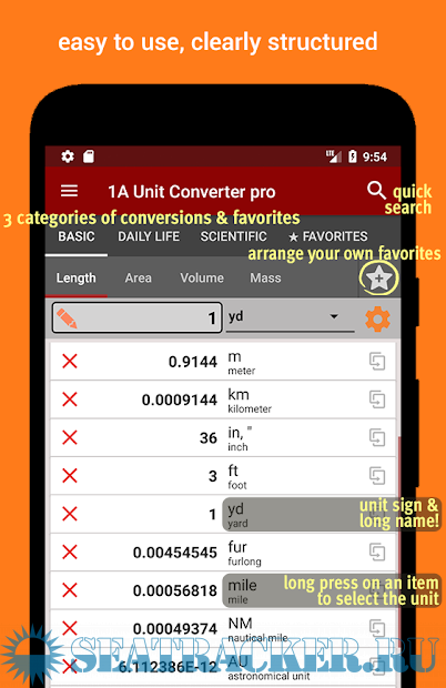 The app contains 35 categories of units - for daily needs, study and work: