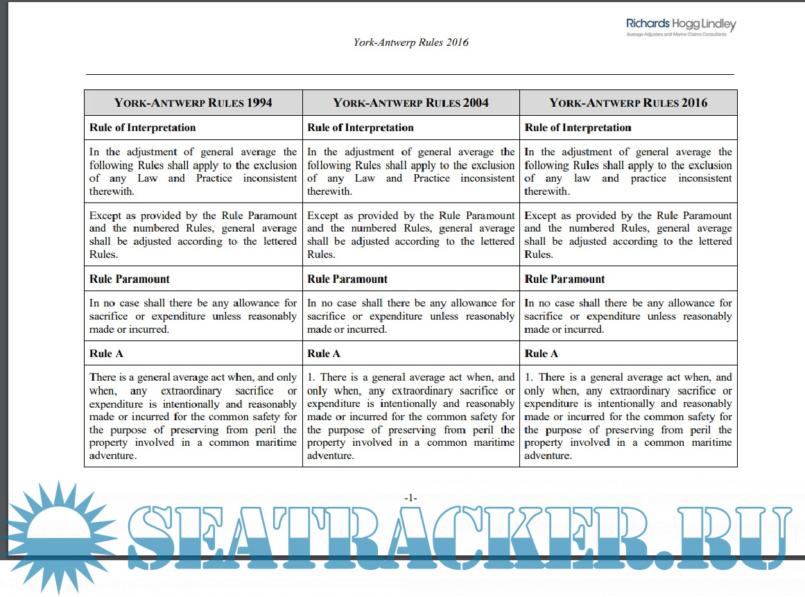Description: YAR 2016 compared with 1994 & 2004 Rules in tabular format.