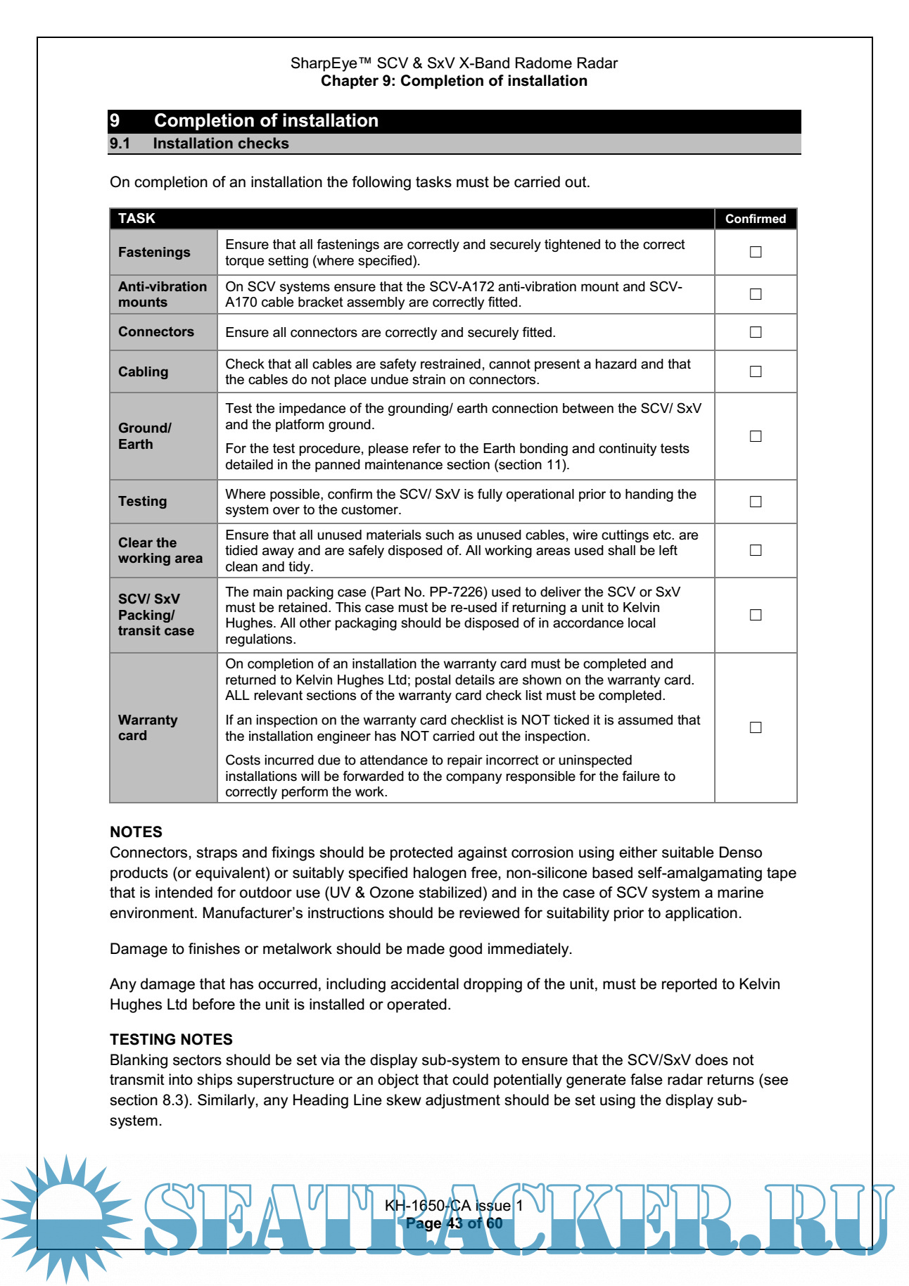 Kelvin Hughes SharpEye X-Band Radome Radar KH-1650 Installation Termination & Maintenance Handbook