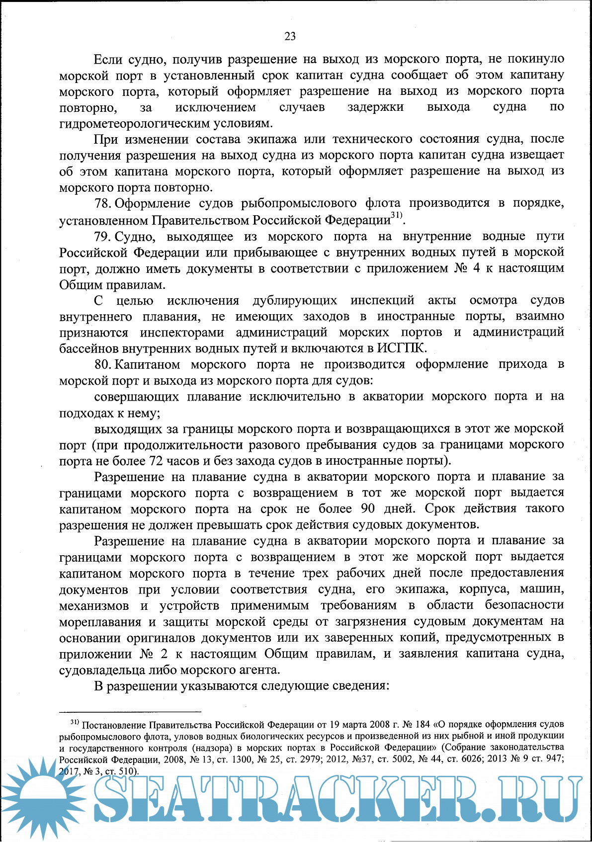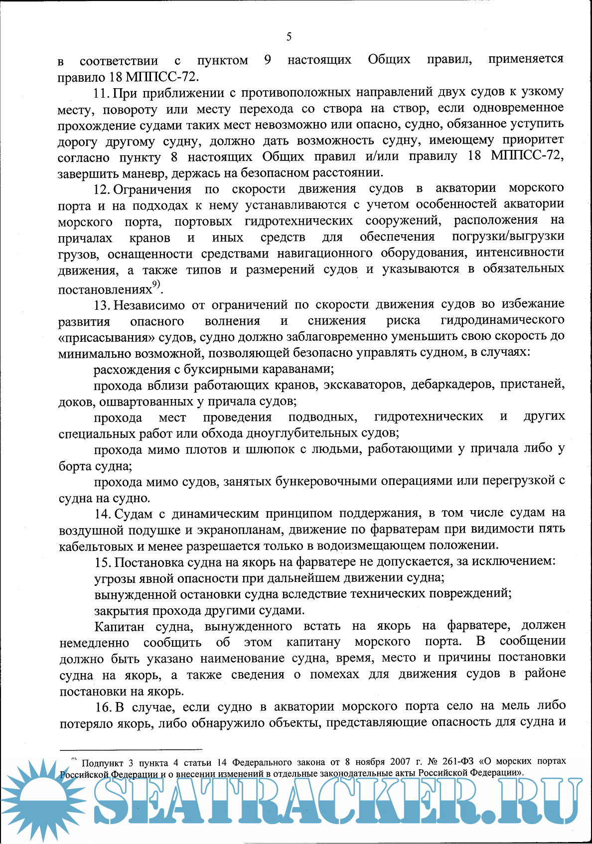 Общие правила плавания и стоянка судов в морских портах Российской Федерации и на подходах к ним