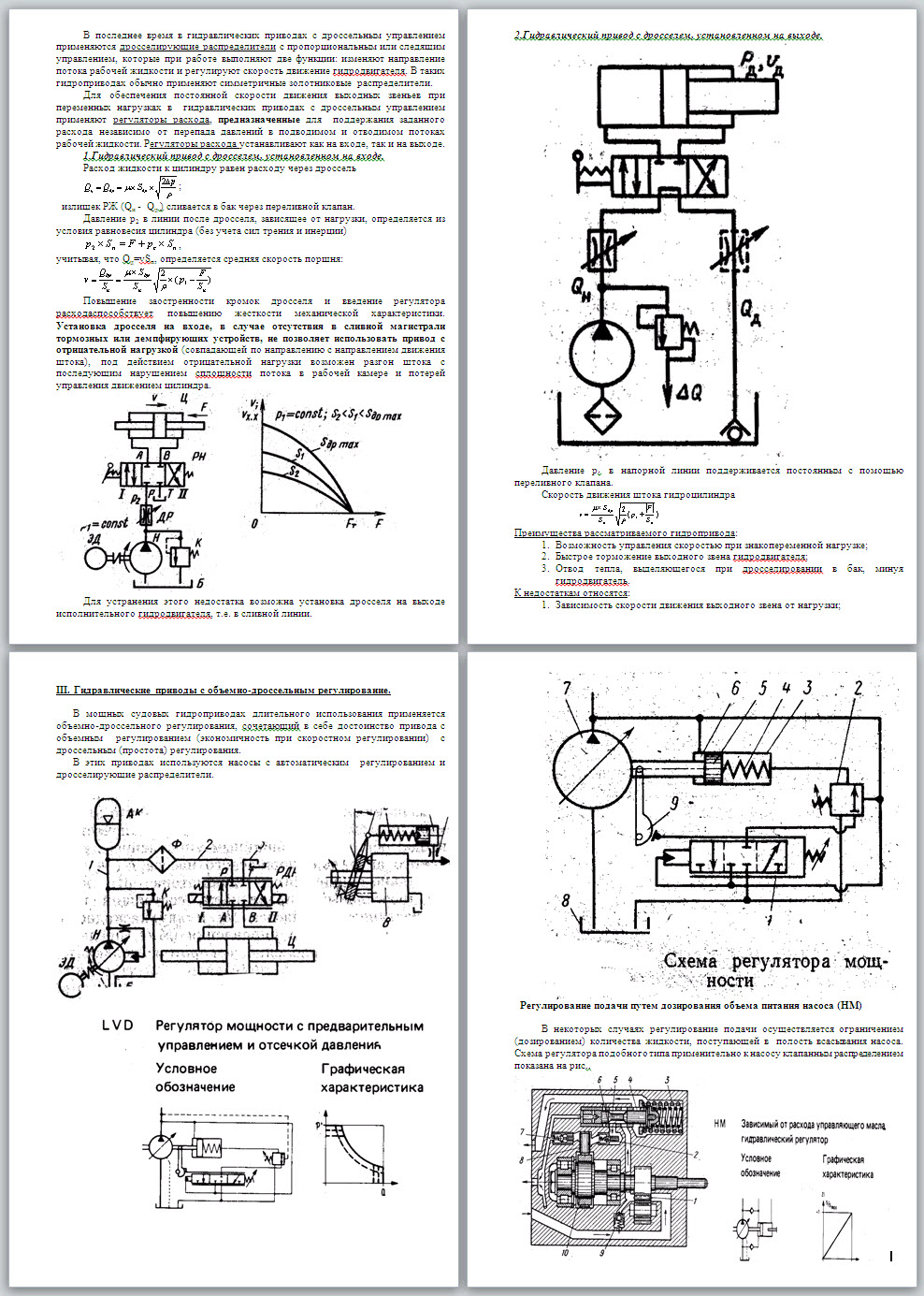 III. Гидравлические приводы с объемно-дроссельным регулирование.